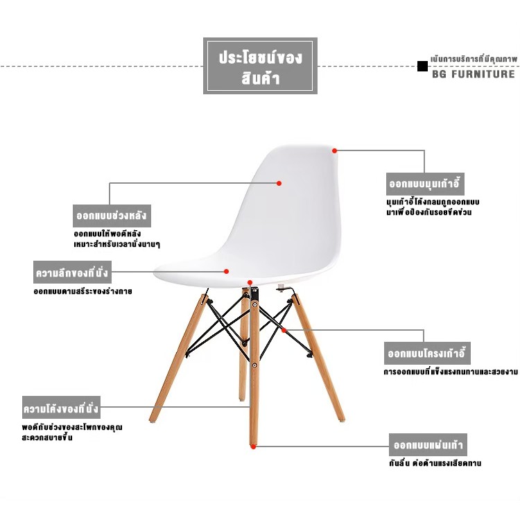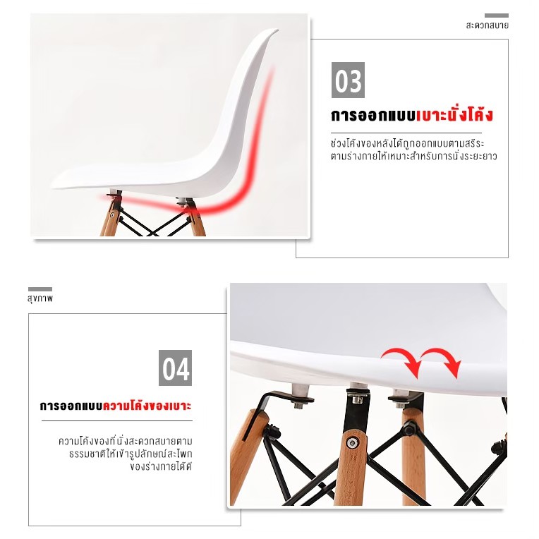 ● ออกแบบตามสรีรศาสตร์ ส่วนโค้งของเก้าอี้เหมาะกับส่วนโค้งของหลัง นั่งสบา