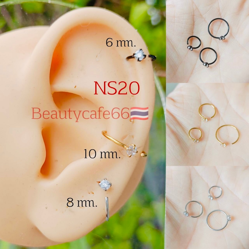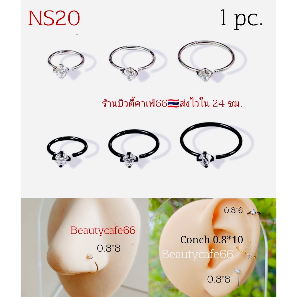 NS20 (1ชิ้น) จิวจมูก จิวหู จิวปาก ก้าน 0.8 บิดง่าย จิวเพชร จิวห่วง Stainless
