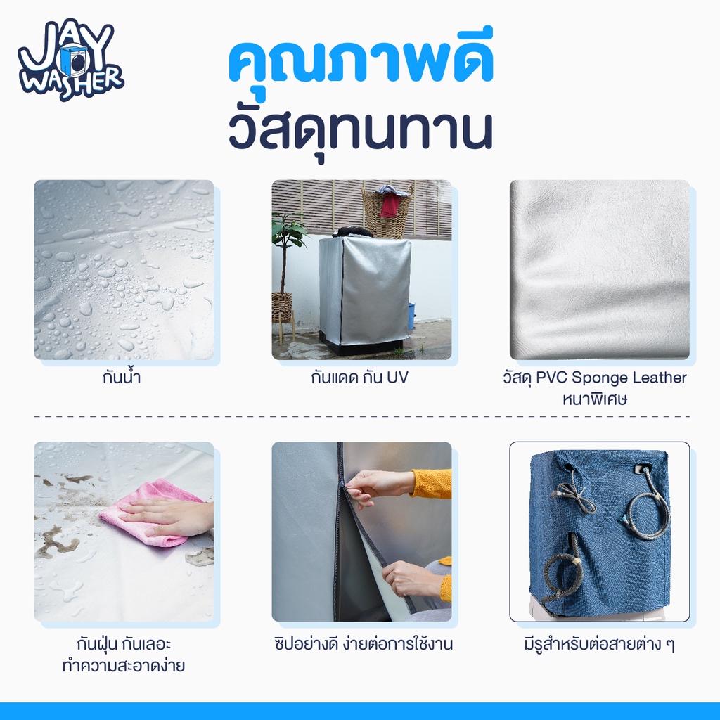 JW ผ้าคลุมเครื่องซักผ้า ฝาหน้า ป้องกันUV กันน้ำ คลุมเต็มทั้งเครื่อง วัสดุพรีเมี่ยม
