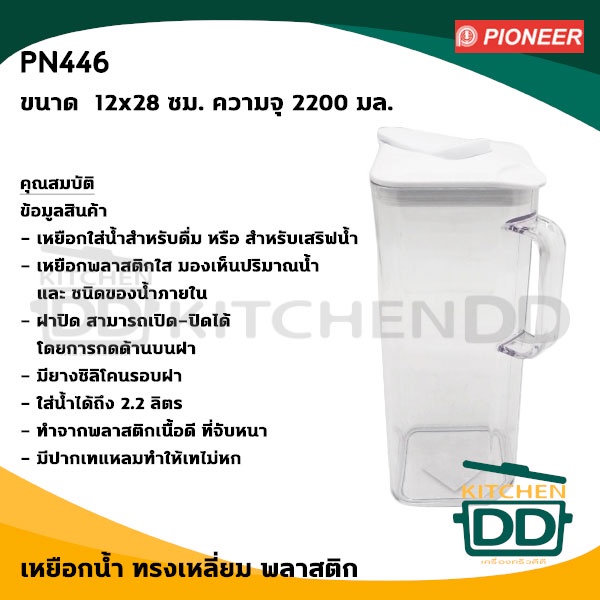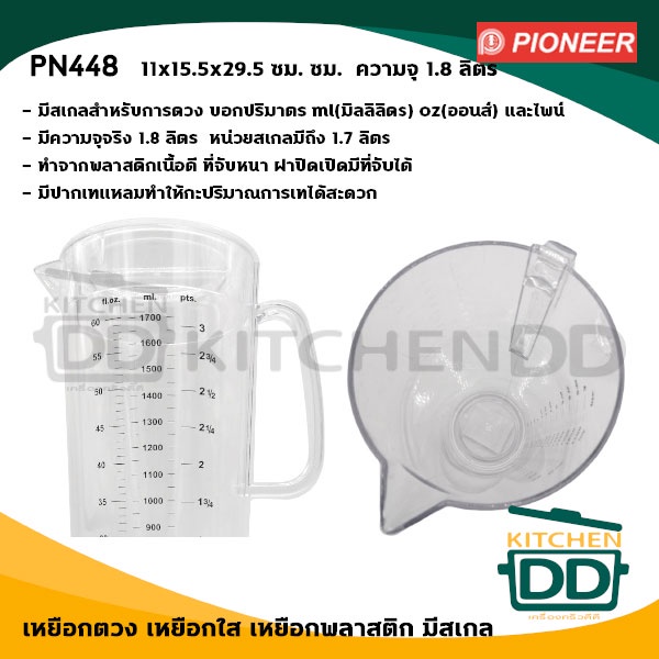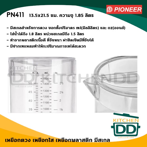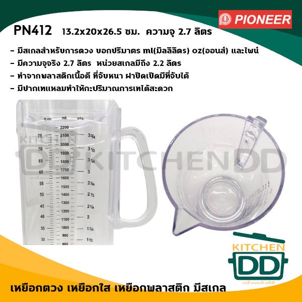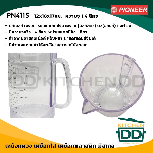 เหยือกน้ำ เหยือกตวง พลาสติก Pioneer ไพโอเนียร์ 1.85/1.4/2.7/1.8/2.2 ลิตร – 1 ใบ