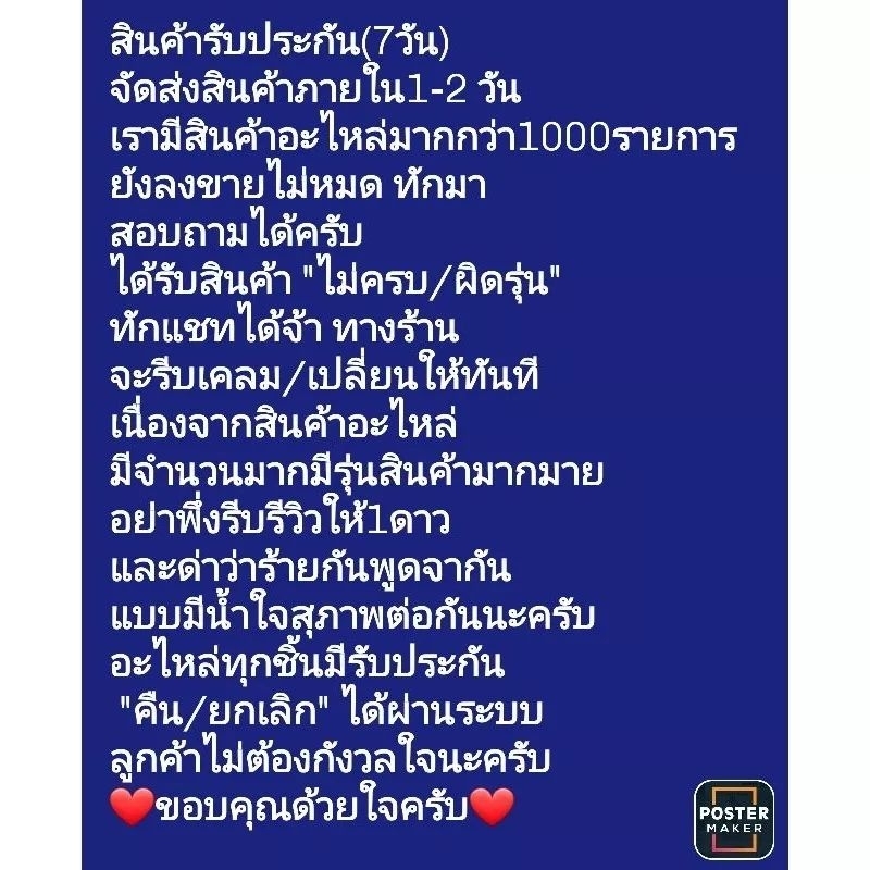 ?เรามีสินค้าอะไหล่มากกว่า1000รายการ ยังลงขายไม่หมด ทักมาสอบถามได้ครับ