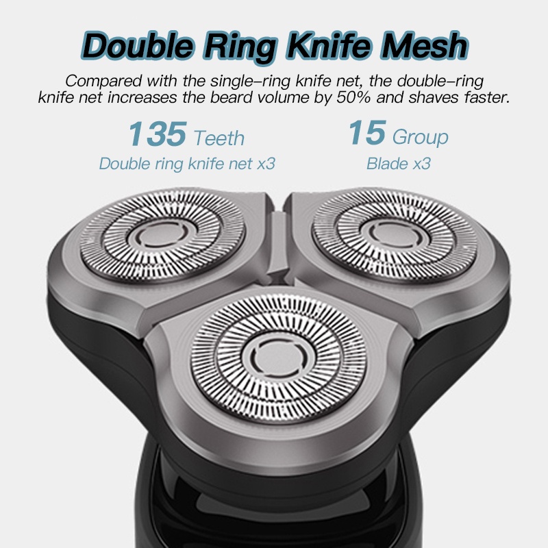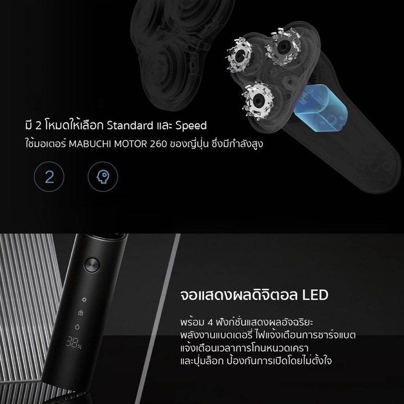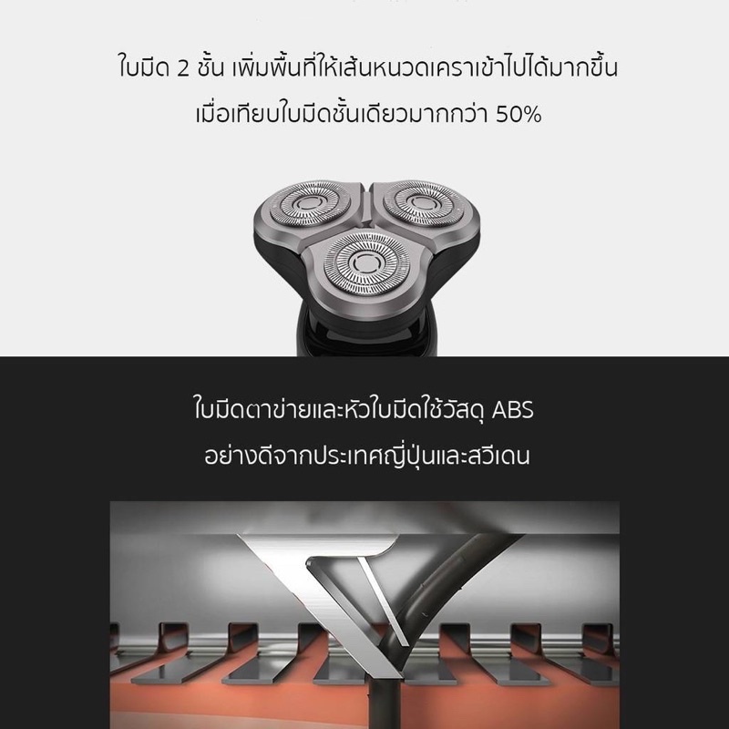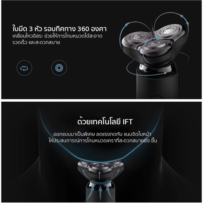 เครื่องโกนหนวดไฟฟ้า ใบมีด 3 หัว เคลื่อนไหวอิสระได้รอบทิศทาง 360 องศา ช่วยให้การโกนหนวดได้สะอาด รวดเร็ว และสะดวกสบาย ออกแบบมาเป็นพิเศ