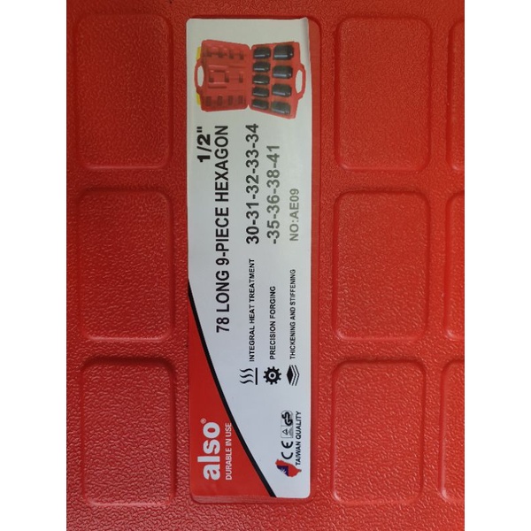 บล็อกชุดลมยาว9ตัวชุดขนาด1/2″ยี่ห้อalsoมีเบอร์30,31,32,33,34,35,36,38&41สามารถใช้ขันถอดเครื่องซักผ้าได้