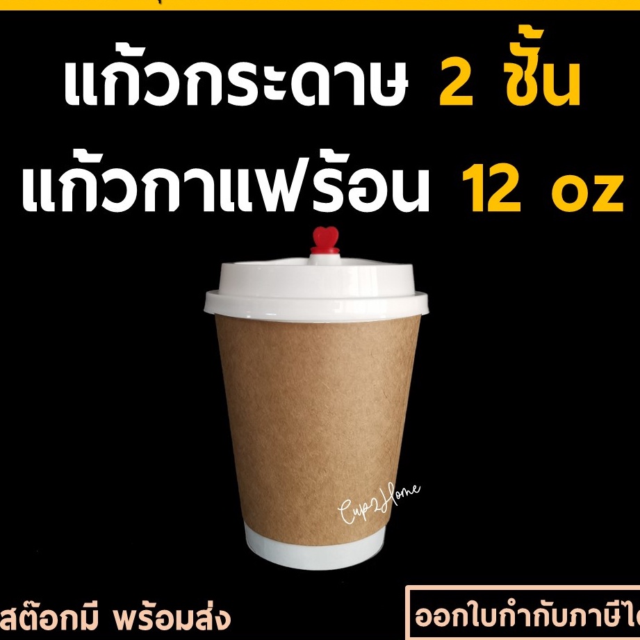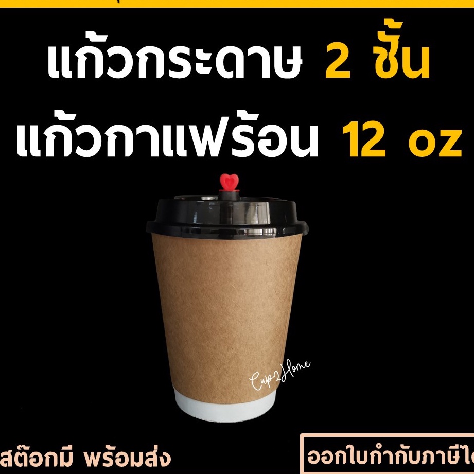 cup2home | [แก้ว+ฝา100ชุด] แก้วกาแฟร้อนกระดาษดับเบิ้ลวอลล์ 12 Oz [Kraft]-หนาพิเศษ+ฝา