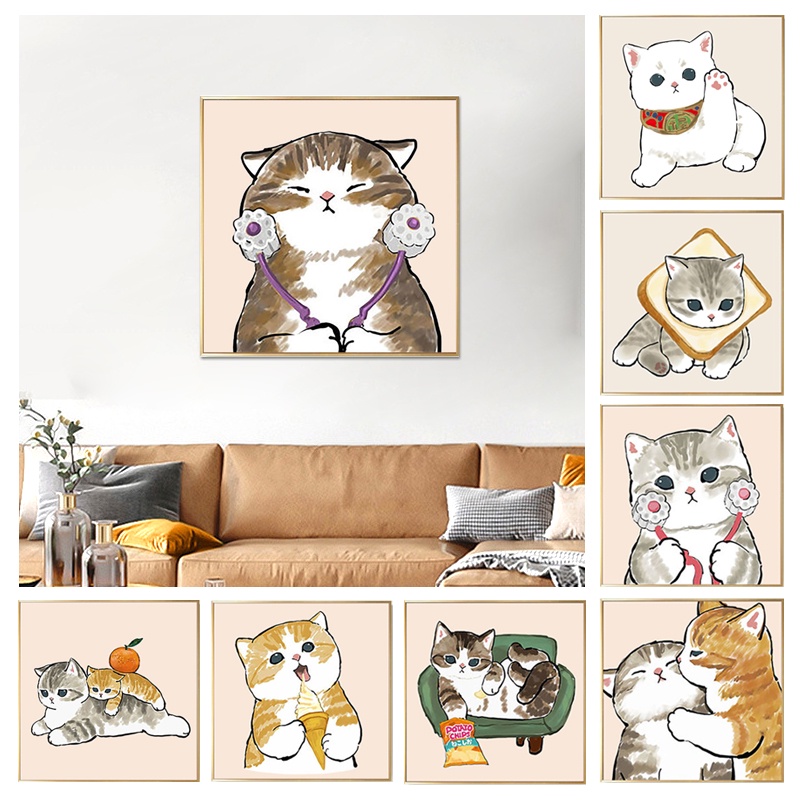 โปสเตอร์ภาพวาดน่ารัก ลายแมวน่ารัก กันน้ํา สําหรับตกแต่งผนังบ้าน