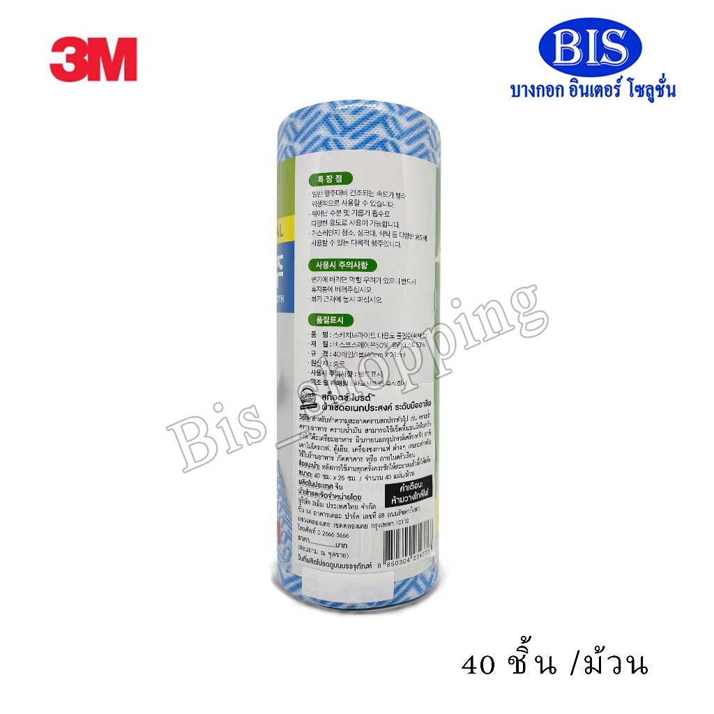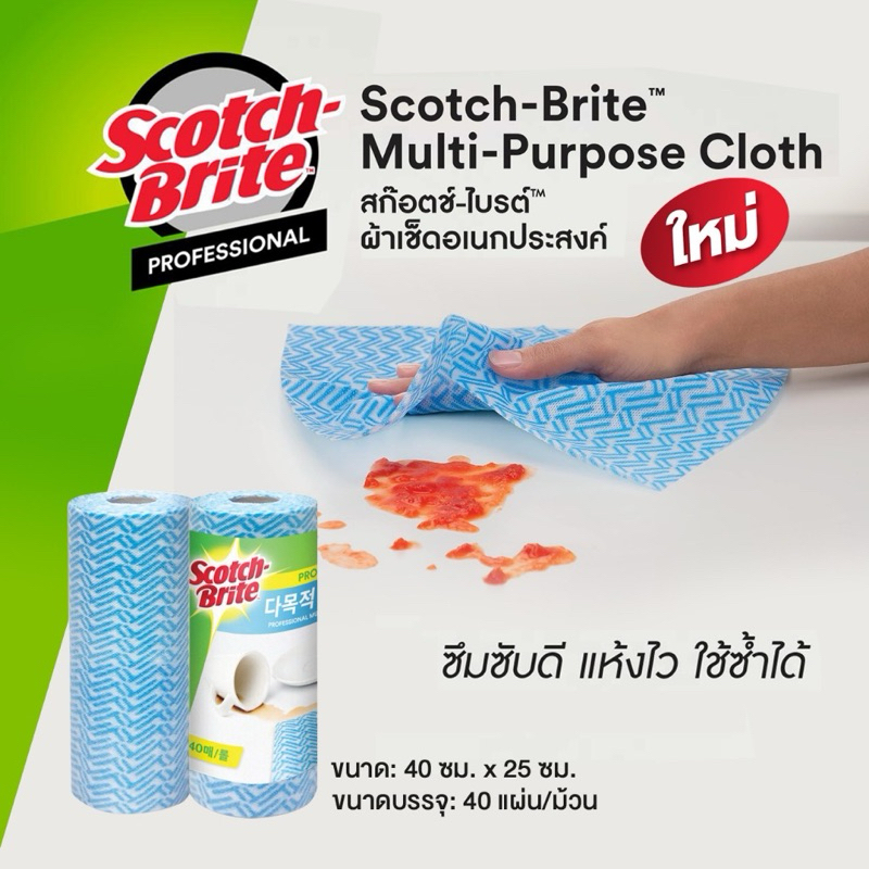 3M ผ้าเช็ดอเนกประสงค์ 3M ผ้าเช็ดโต๊ะ ผ้าเช็ดจาน สก็อตซ์-ไบรต์ 40แผ่น/ม้วน (ม้วนละ174บาท)