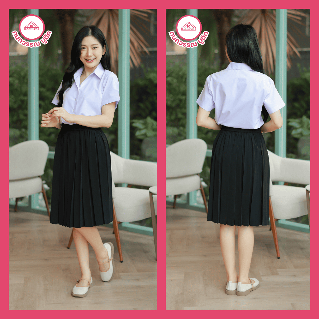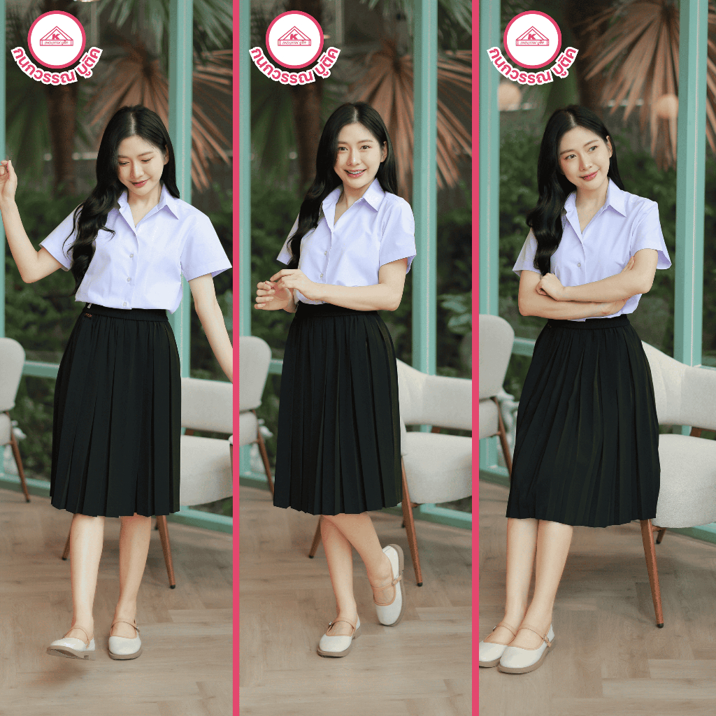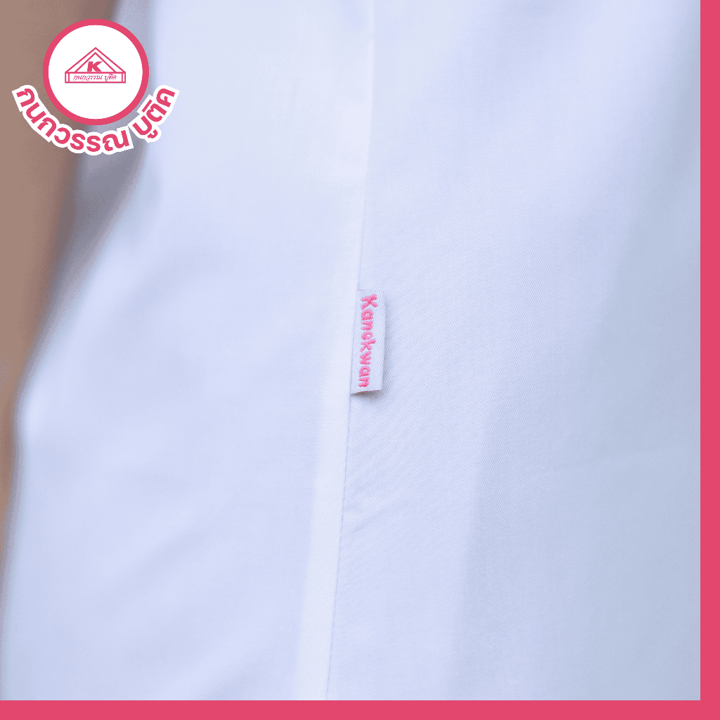 เสื้อนักศึกษาหญิง ขาวนวล แขนปกติ เข้ารูป หลังว่าง