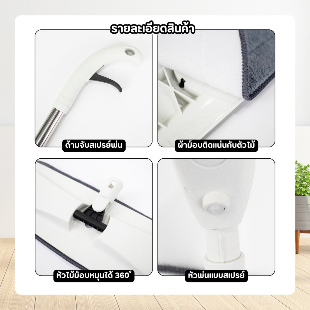 อะไหล่ด้ามม็อบพร้อมผ้าไมโครไฟเบอร์ ใช้กับถังปั่น BE WISH/BE MAN รุ่น VALUE/PLUS ผ้าม็อบผลิตจากเส้นใยไมโครไฟเบอร์ ช่วยซับน้ำ และดักจับฝุ่นได้ดีเยี่ยม ด้ามม็อบผลิตจากสเตนเลสคุณภาพดี แข็งแรงทนทาน