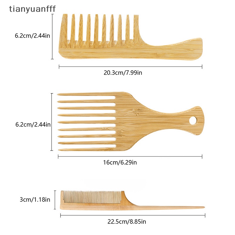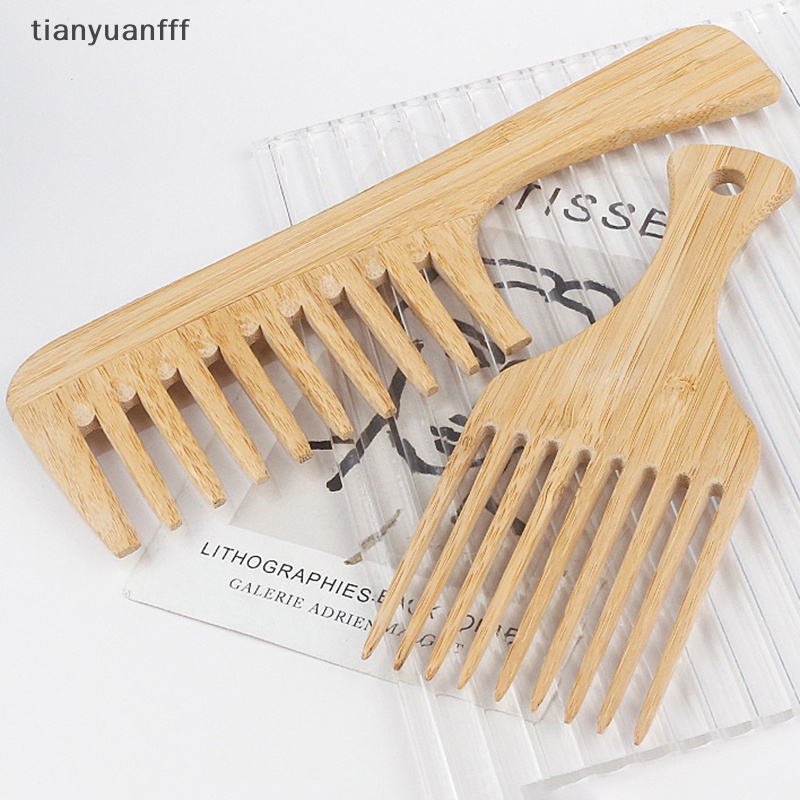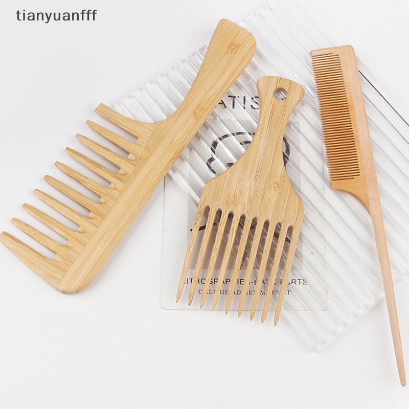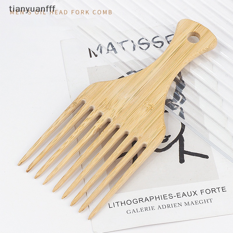 Tianyuanfff หวีไม้ไผ่ธรรมชาติ ป้องกันไฟฟ้าสถิตย์ ส้อมแอฟริกา สําหรับผู้หญิง 1 ชิ้น