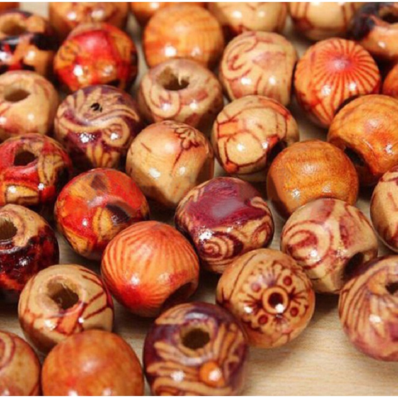 ลูกปัดไม้ แฮนด์เมด รูขนาดใหญ่ 9 มม. * 10 มม. สําหรับทําเครื่องประดับ DIY 100 ชิ้น