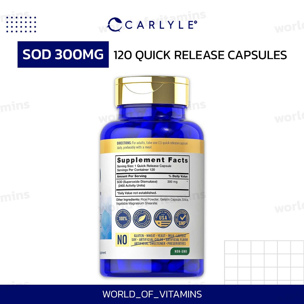 Carlyle Superoxide Dismutase S.O.D. 300 มก. 120 เม็ด – วิตามินเสริมสูตรอ่อนโยน
