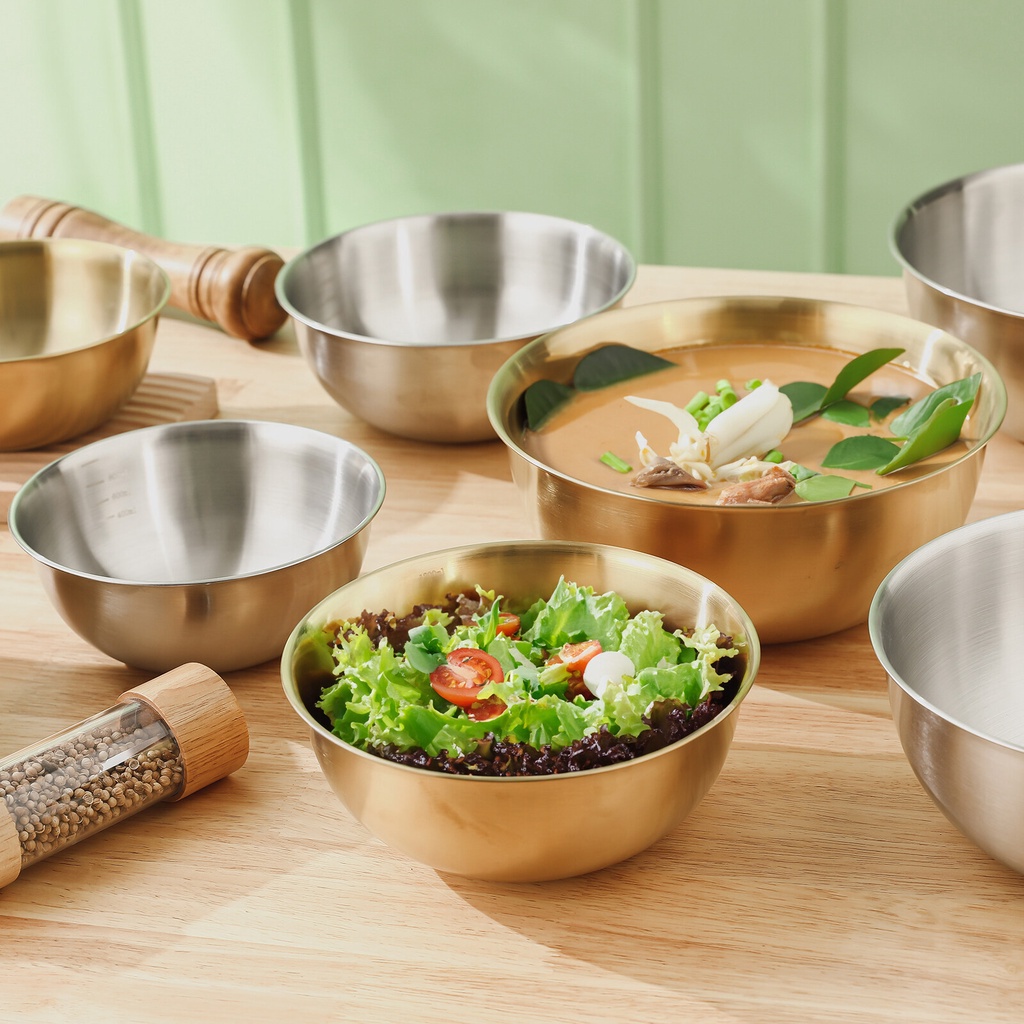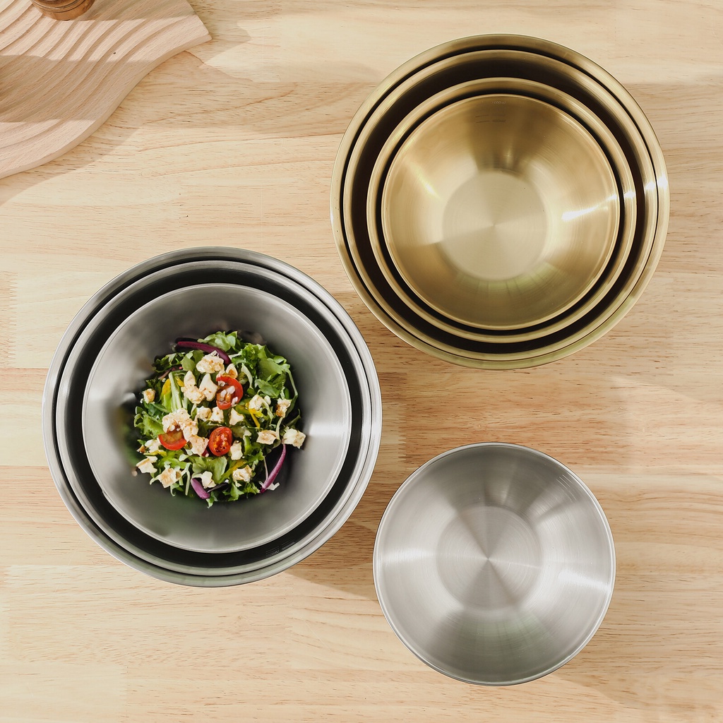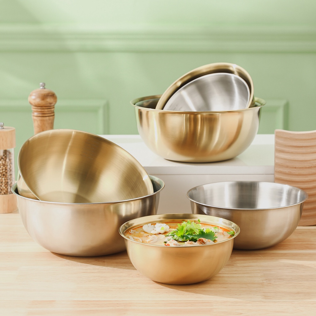 SZX ชามสลัดทรงเกาหลี งานสแตนเลสแท้เกรดพรีเมี่ยม มี2สี4ขนาด ราคาต่อใบ ชามสลัด สเตนเลส สไตล์เกาหลี สีทอง สําหรับใส่ซุป