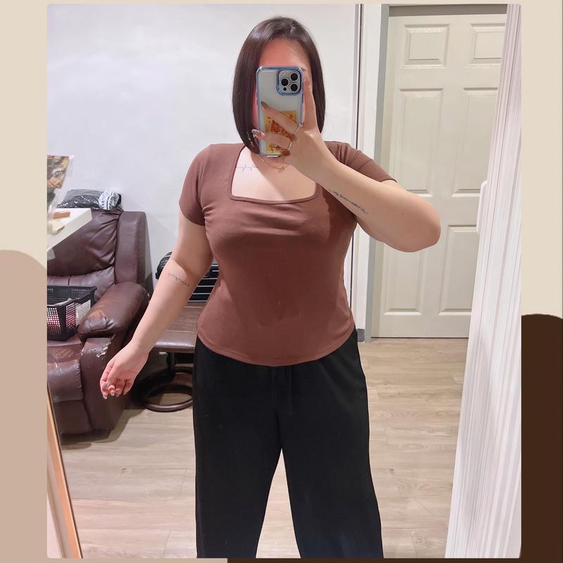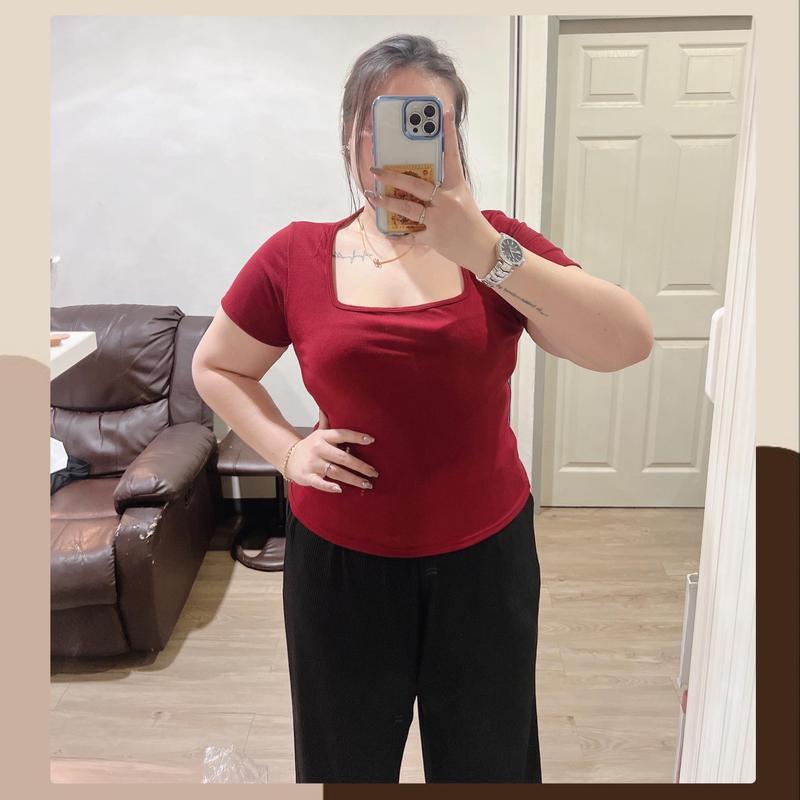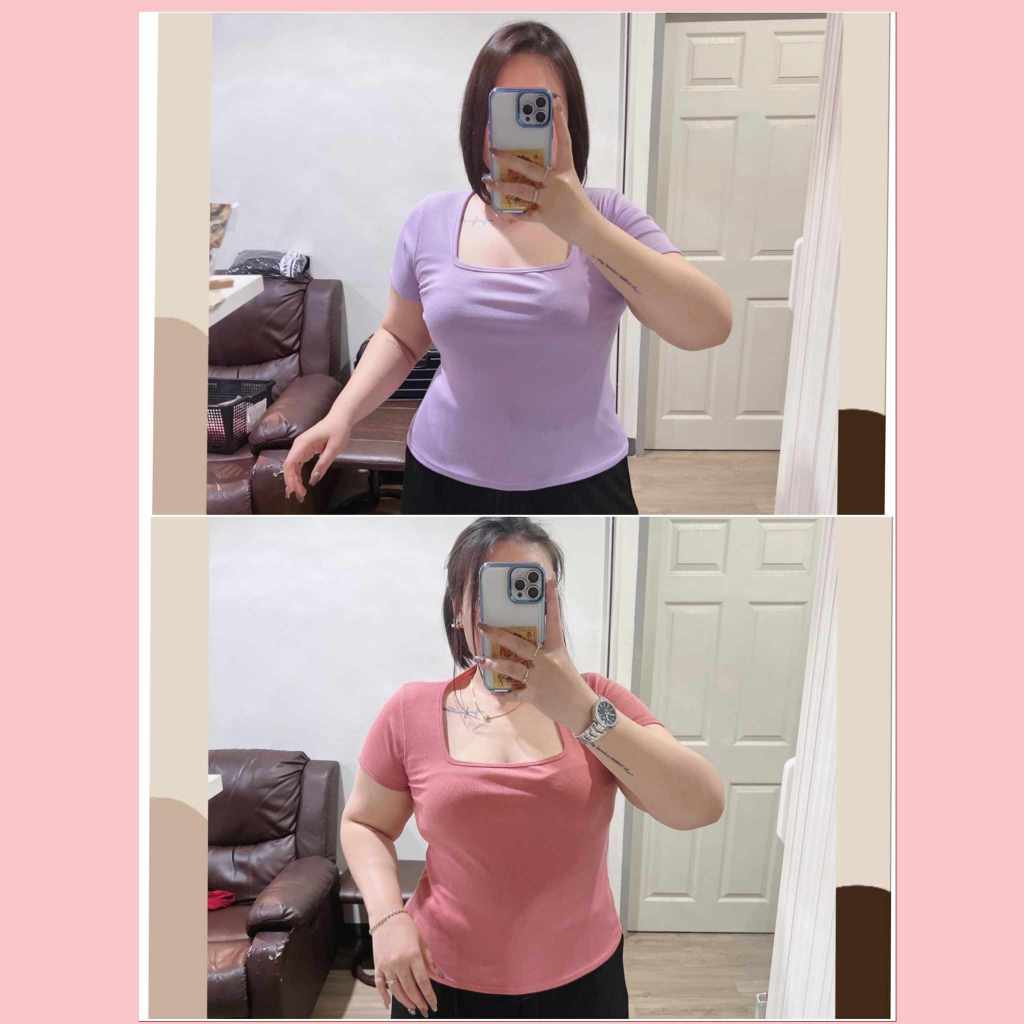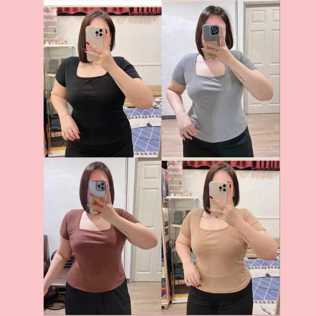เสือยืดคอเหลี่ยมผ้าร่องยืด งานสีพื้น แมทซ์ง่ายได้ทุกสไตล์