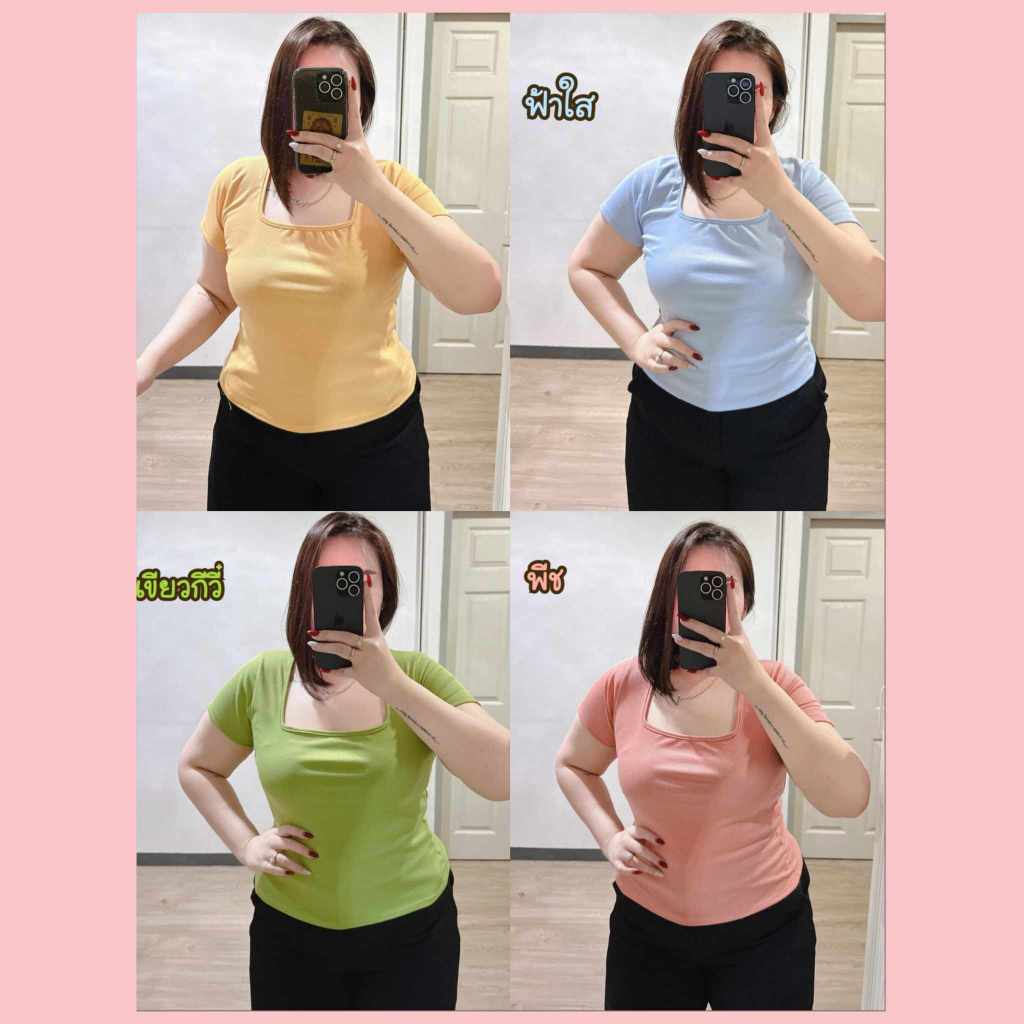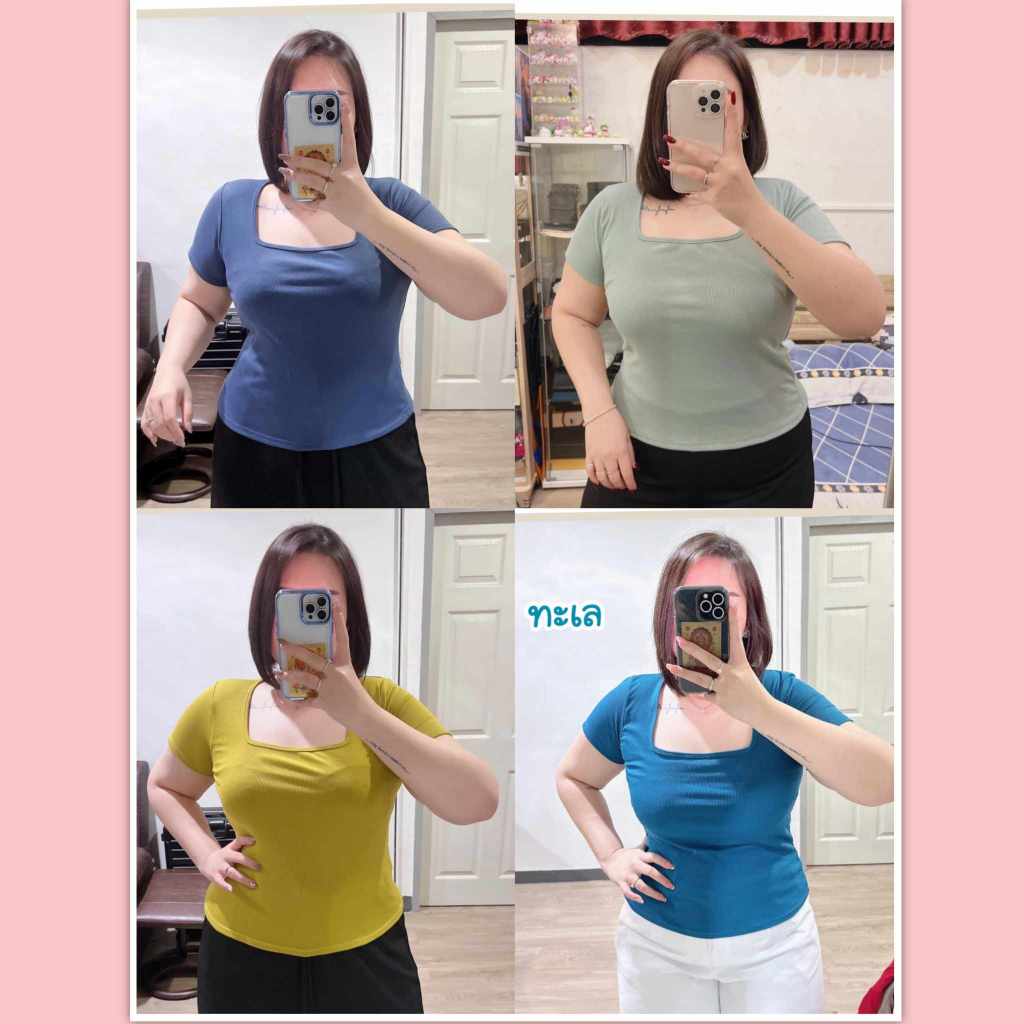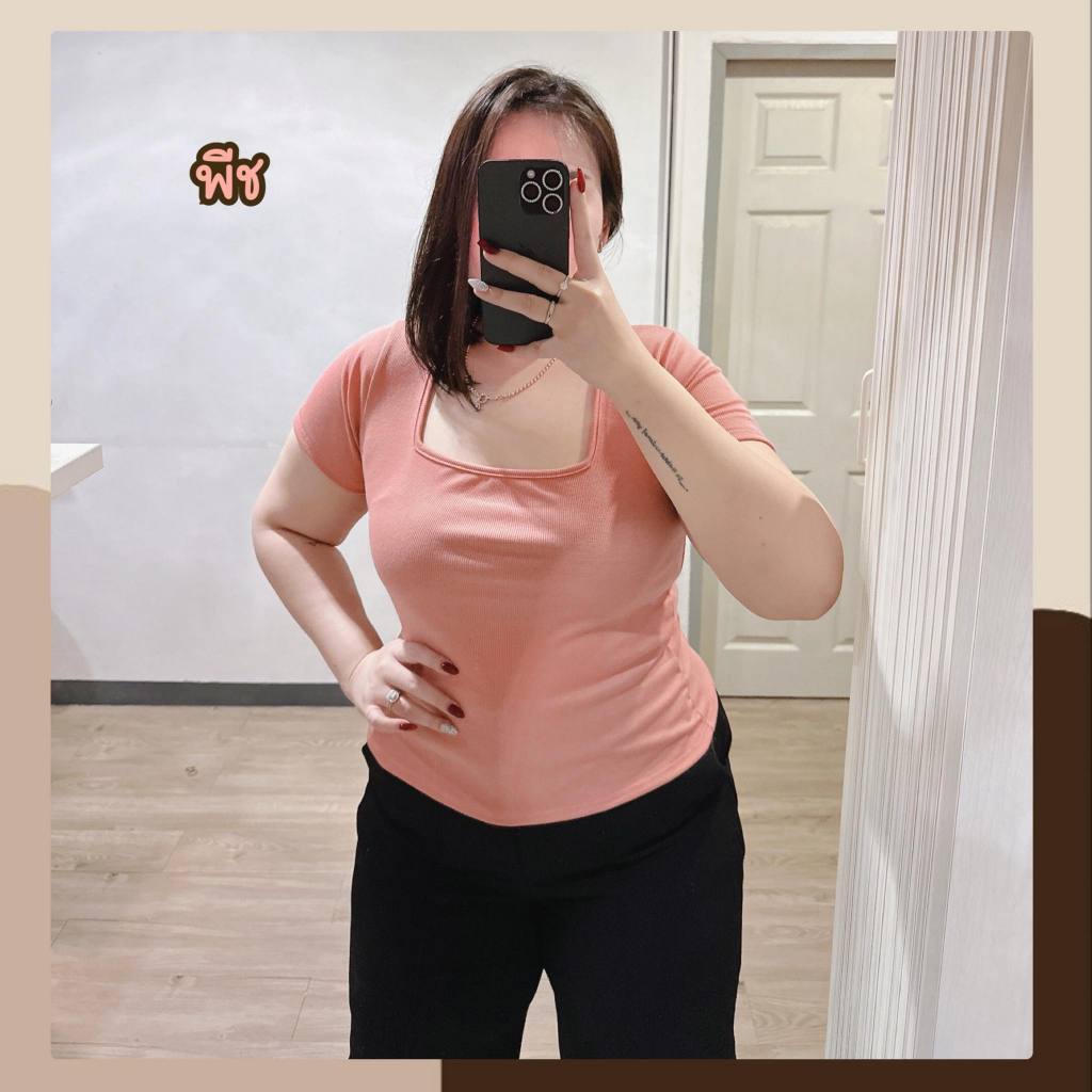 #ง11 เสิ้อยืดคอเหลี่ยมแขนสั้นไซร้ใหญ่ สาวอวบ [อก 40-48]นิ้ว