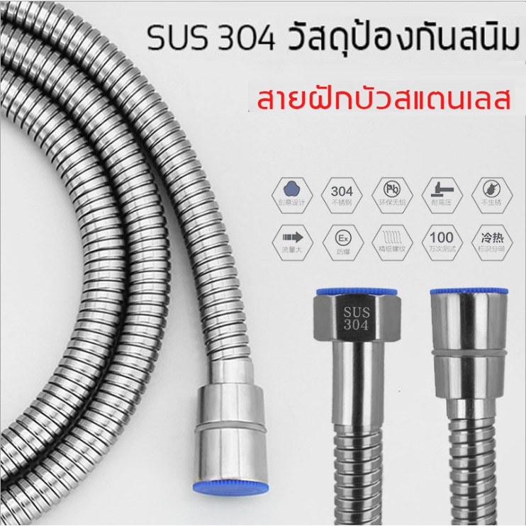 สายสแตนเลส 304 แท้!! สายฉีดชำระ สายฝักบัวไม่เป็นสนิม ทน ของแท้ 100% ยาว 1.5 เมตร #M006