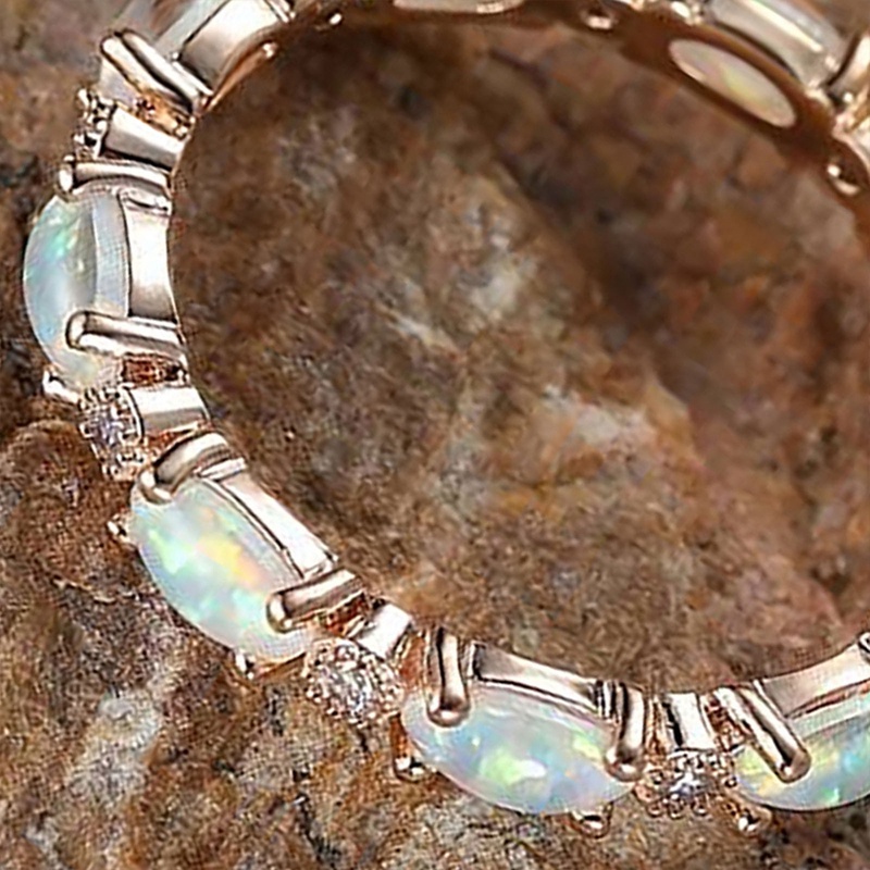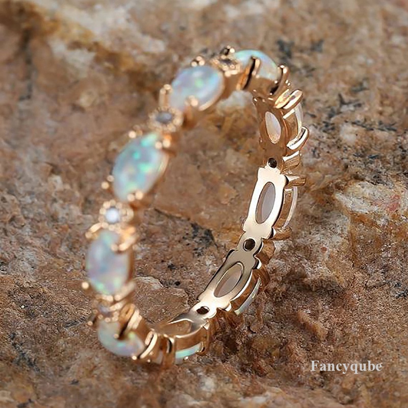 Fancy แหวนหมั้น หินโอปอล สีรุ้ง สีขาว สีเงิน สีโรสโกลด์ ขนาดเล็ก สําหรับผู้หญิง งานแต่งงาน