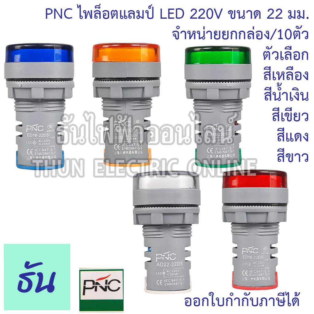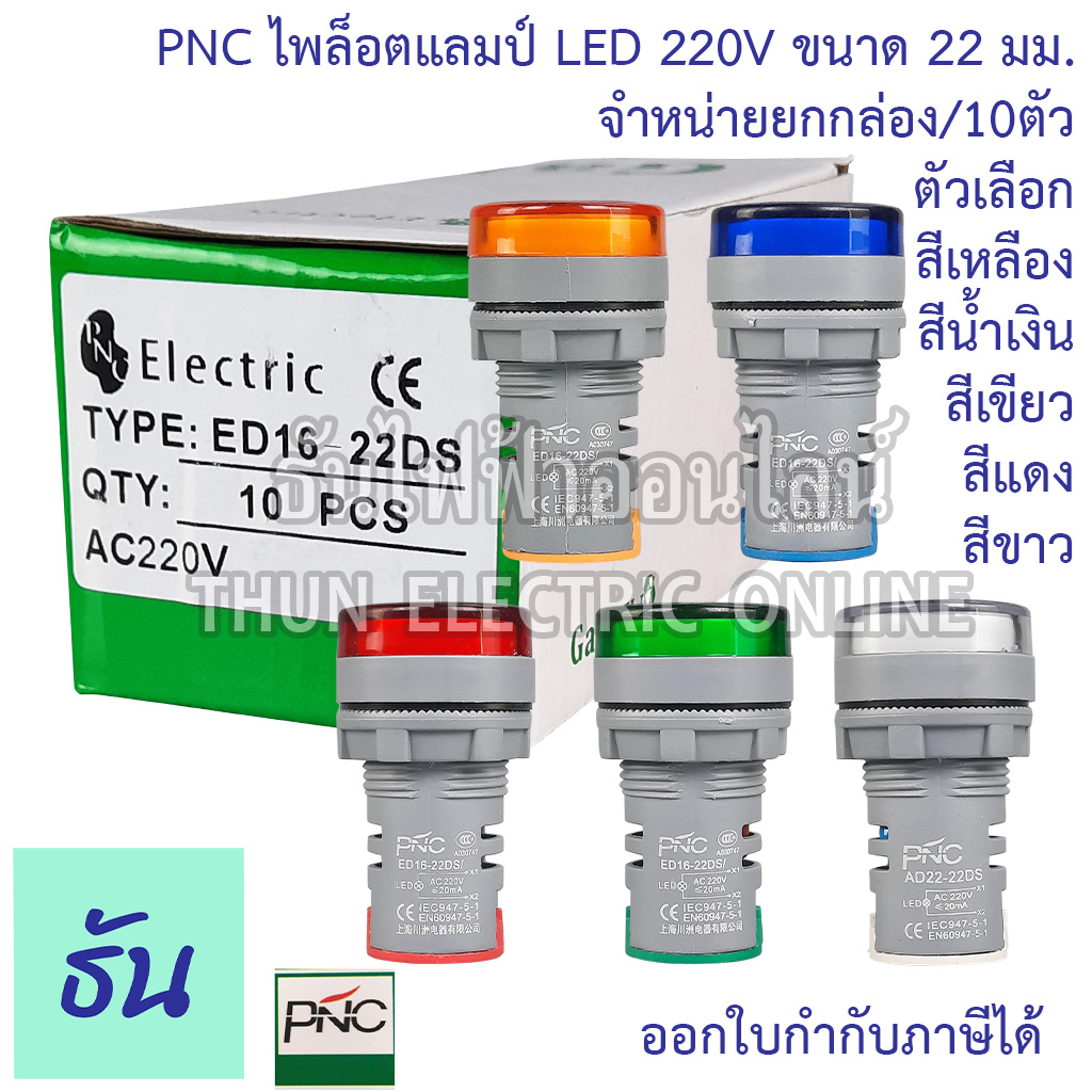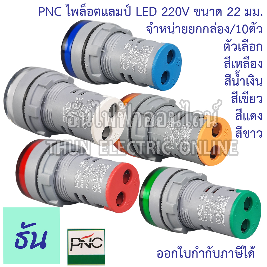 PNC ED16-22DS (ยกกล่อง 10ตัว) ไพล็อตแลมป์ LED 220V ตัวเลือก แดง เหลือง น้ำเงิน เขียว ขาว ยกกล่อง แลมป์ Lamp ไฟหน้าตู้
