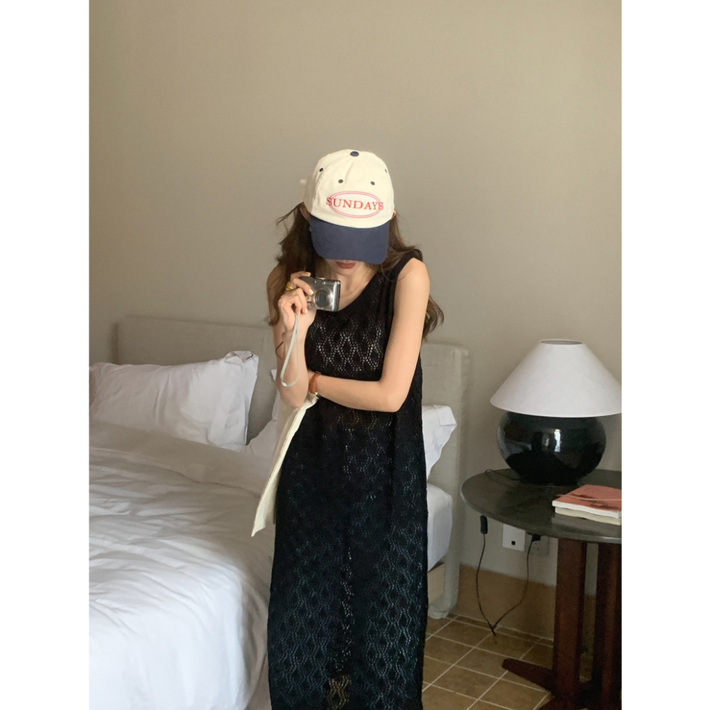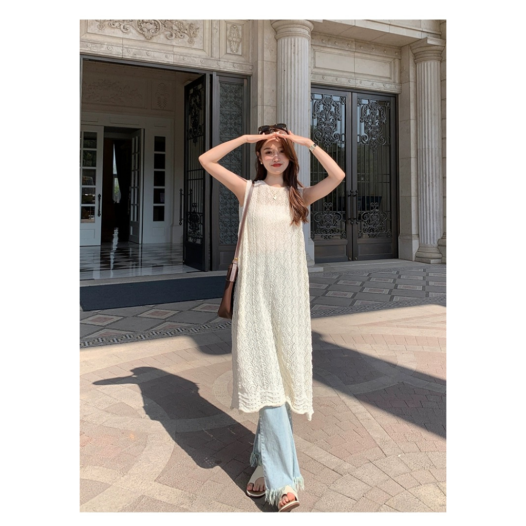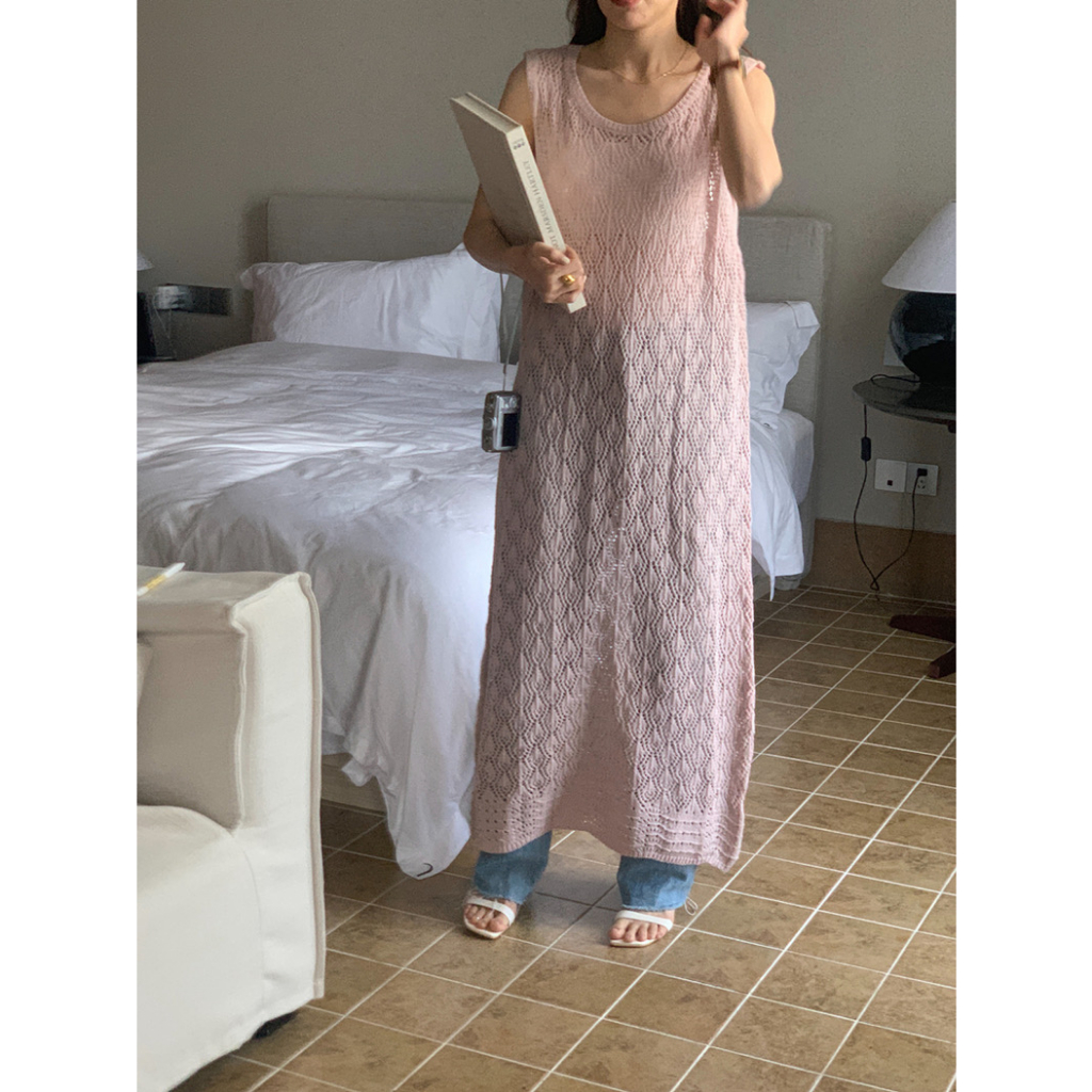 Cicishop(Z1167)ชุดคลุมไหมพรมซีทรู แขนกุด ดีเทลใส่ได้2ด้าน สไตล์น่ารักเบาๆ