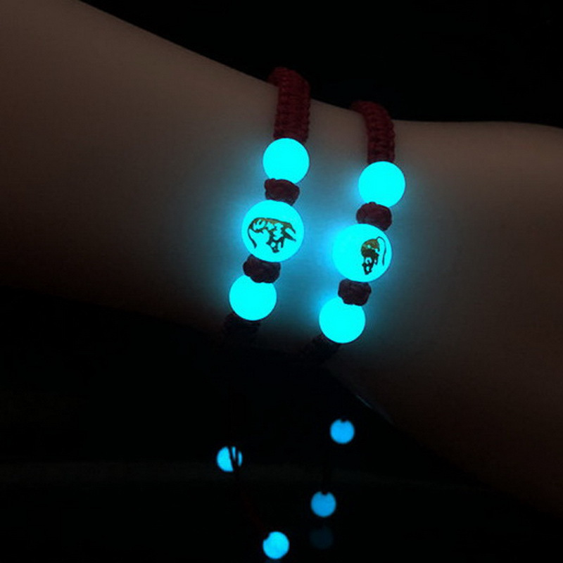 สร้อยข้อมือ ประดับลูกปัดเรืองแสง แฮนด์เมด รูปสัตว์ 12 ราศี เหมาะกับของขวัญ เครื่องประดับ สําหรับผู้ชาย และผู้หญิง