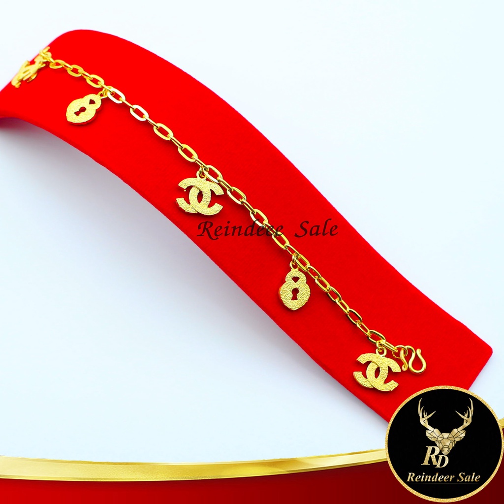 สร้อยข้อมือ สร้อยข้อมือแฟชั่น ลายโซ่เรือ ห้อยตุ้งติ้ง น้ำหนัก 2 สลึง ยาว 7 นิ้ว งานเคลือบแก้ว ชุบเศษทอง แถมฟรีตะขอสำรอง