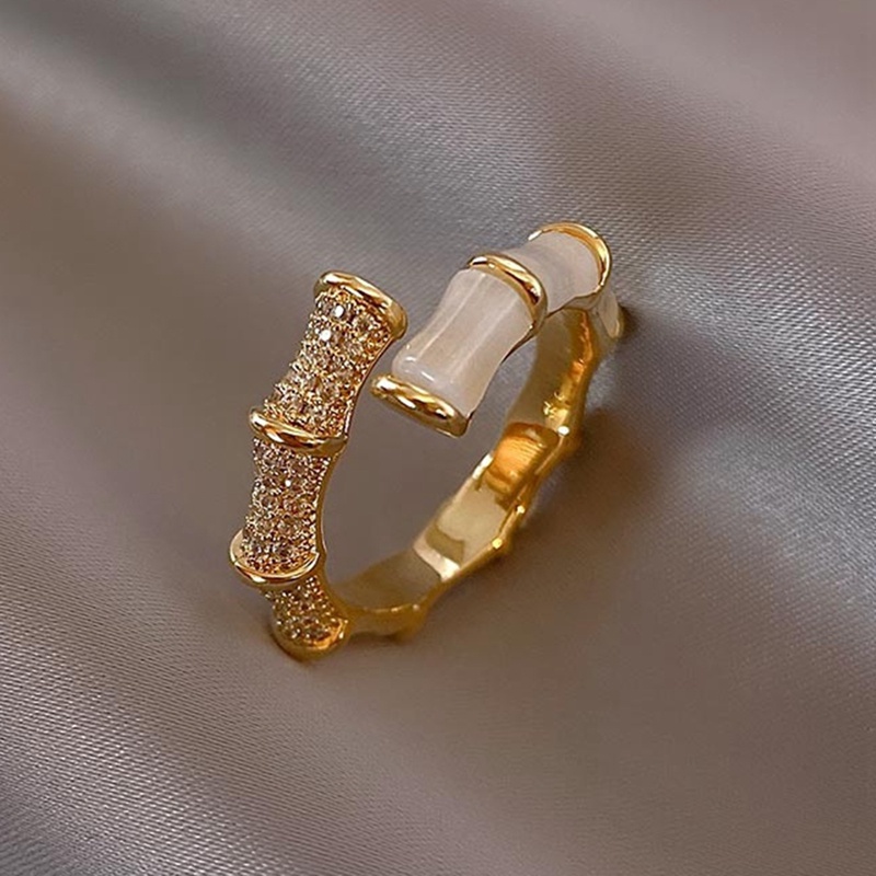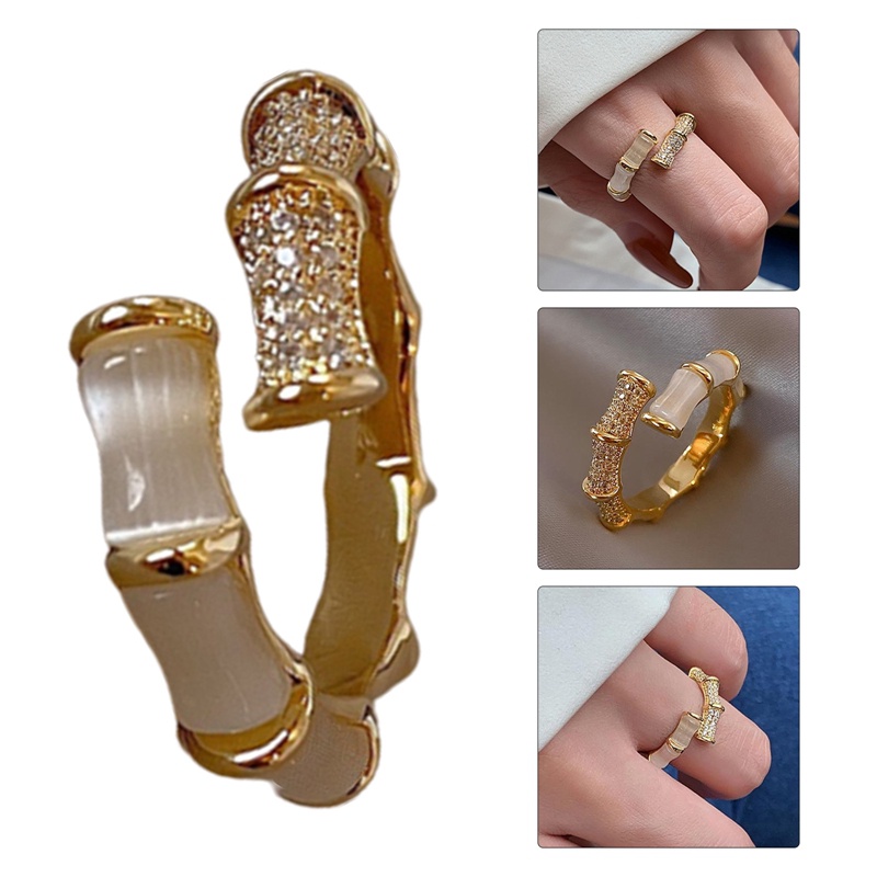 Fancyqube ใหม่ แหวนโอปอลไม้ไผ่ สีทอง ปรับได้ เครื่องประดับแฟชั่นเกาหลี ปาร์ตี้ หรูหรา อุปกรณ์เสริม