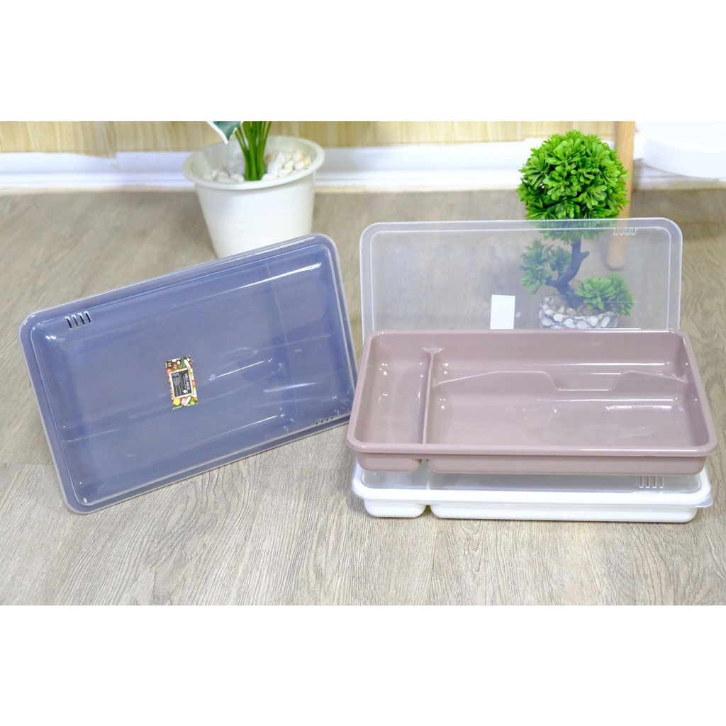 กล่องใส่ช้อนส้อม ที่ใส่ตะเกียยบ ทีใส่ช้อน ซ่อม ตะเกียบ 3สี สวยหรูหรา สไตล์โมเดิล มีฝาปิดกันฝุ่่น มี3ช่อง ราคาถูก