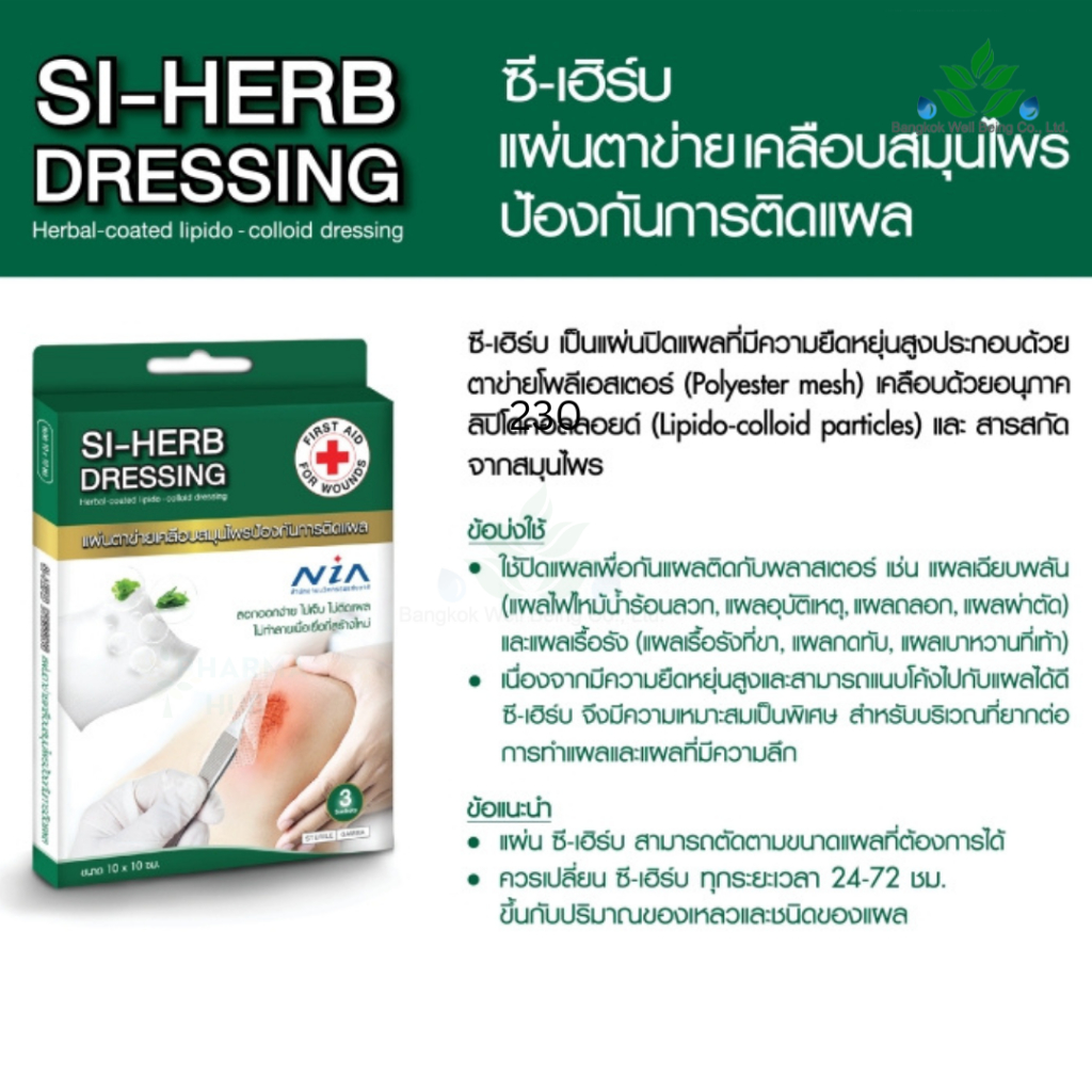 SI-HERB ซี-เฮิร์บ แผ่นตาข่ายติดแผล 10×10 ซม. บรรจุ 3 ชิ้น/กล่อง ป้องกันการติดแผล