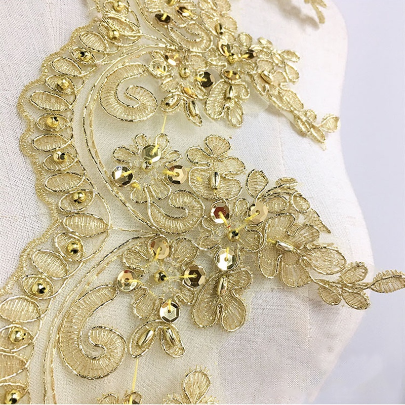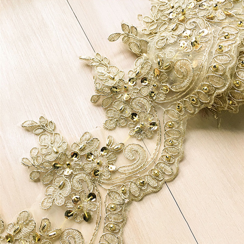 1 หลาลูกไม้สีทองเย็บปักถักร้อยผ้าชุดบ้านสิ่งทอเลื่อมตัดแต่งเสื้อผ้าเต้นรำ DIY Materail กว้าง 13 ซม