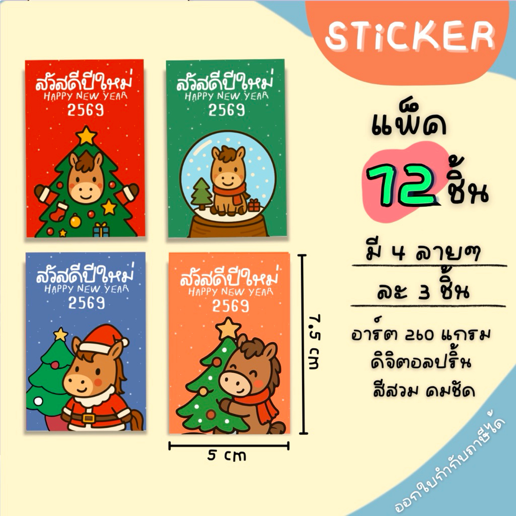 สวัสดีปีใหม่ 2569 อัพเดตลายใหม่ ปีมะเมีย (ปีม้า) การ์ด สติ๊กเกอร์ ป้ายห้อย รหัส 09