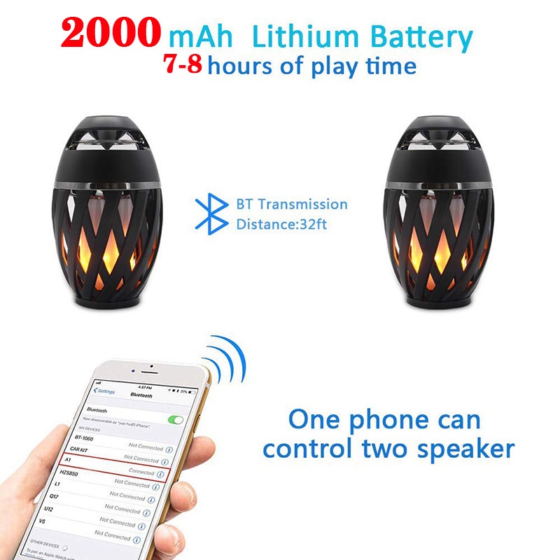 [พร้อม] ลำโพงบลูทูธกลางแจ้ง, ลำโพงบลูทูธ Led Flame, Ipx5 Waterproof Flame Torch Atmosphere Speaker, Flame Lamp, Gift For Men Women, Decorations For Party Garden Home Patio