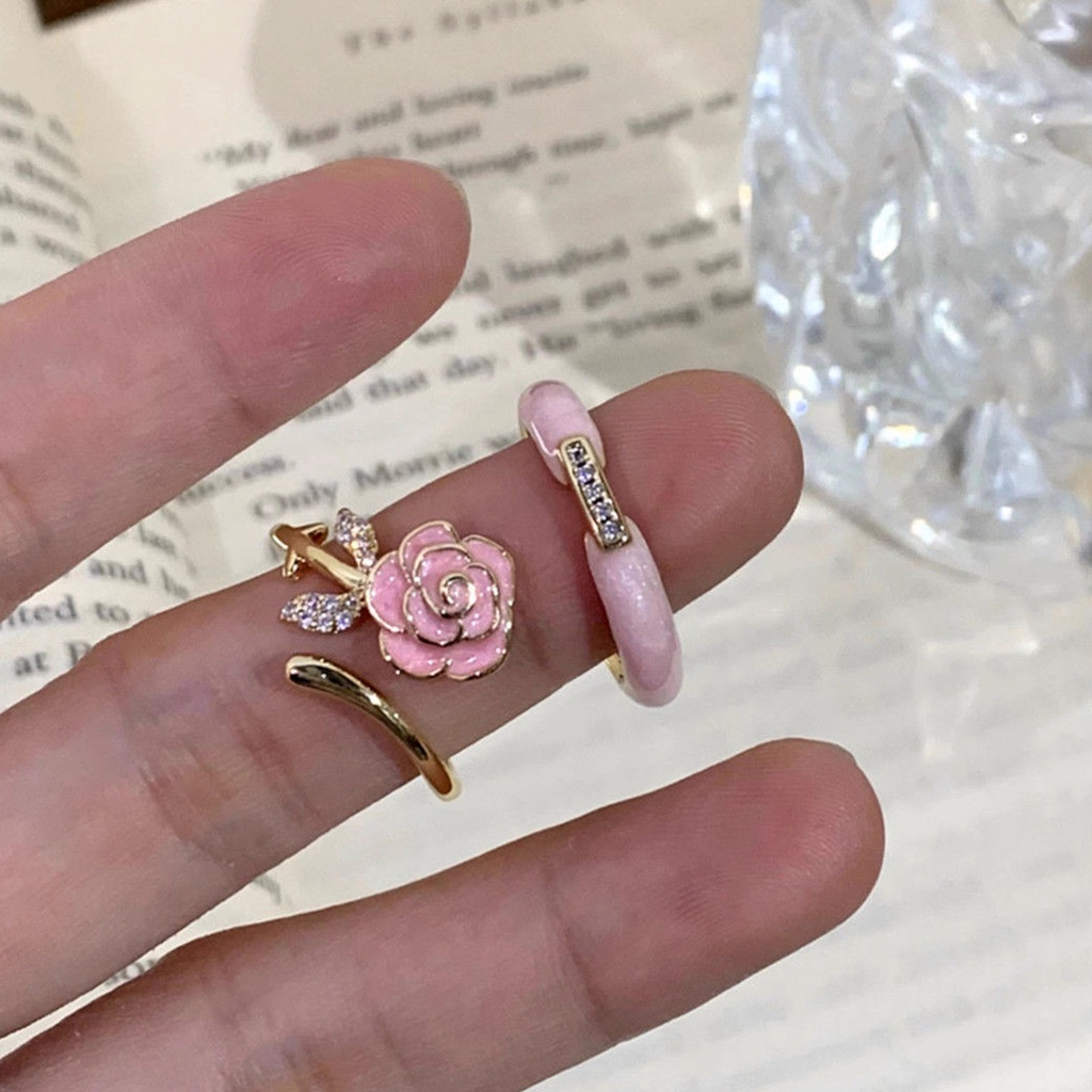 แหวนโลหะผสม รูปเรขาคณิต ดอกไม้ ประดับพลอยเทียม แฟชั่นสําหรับผู้หญิง