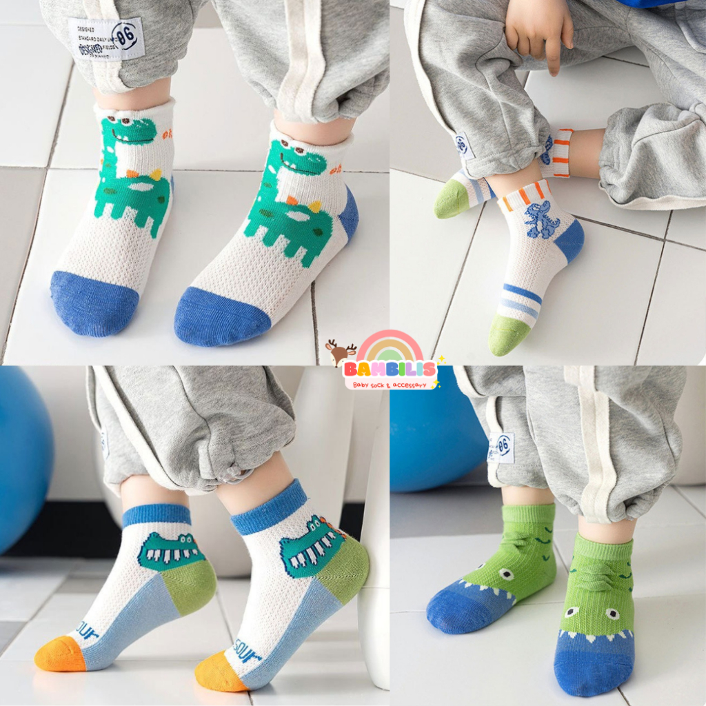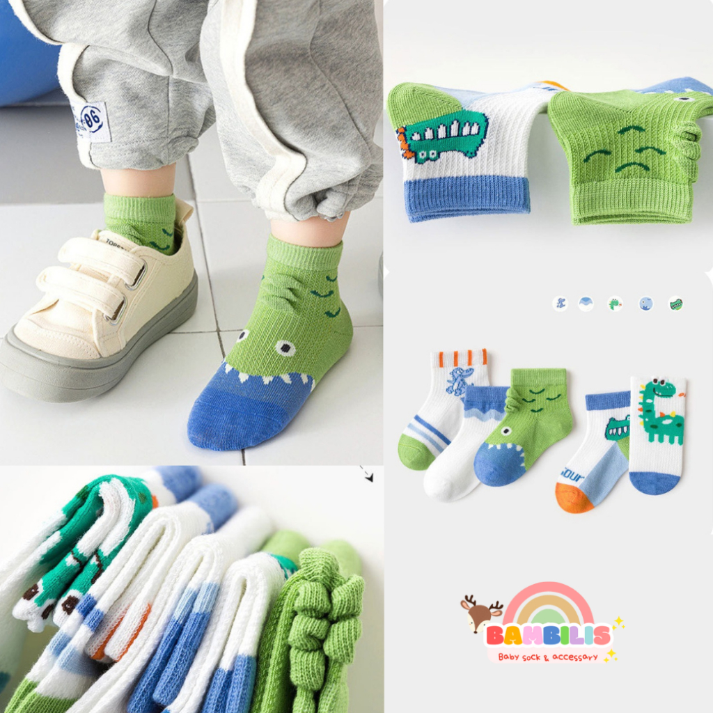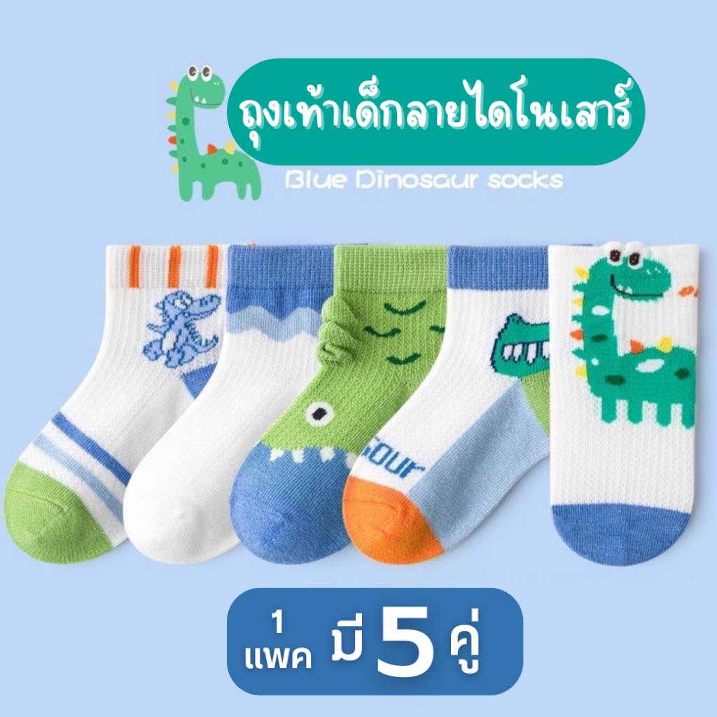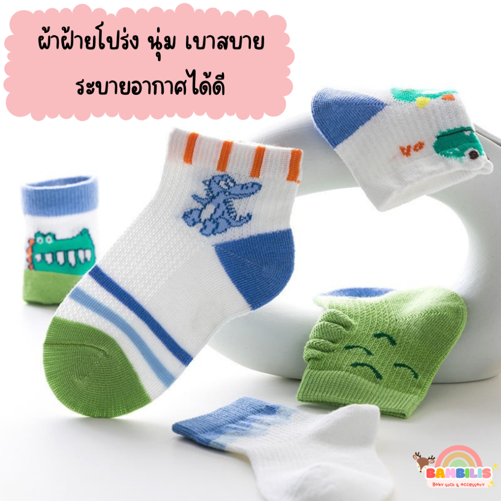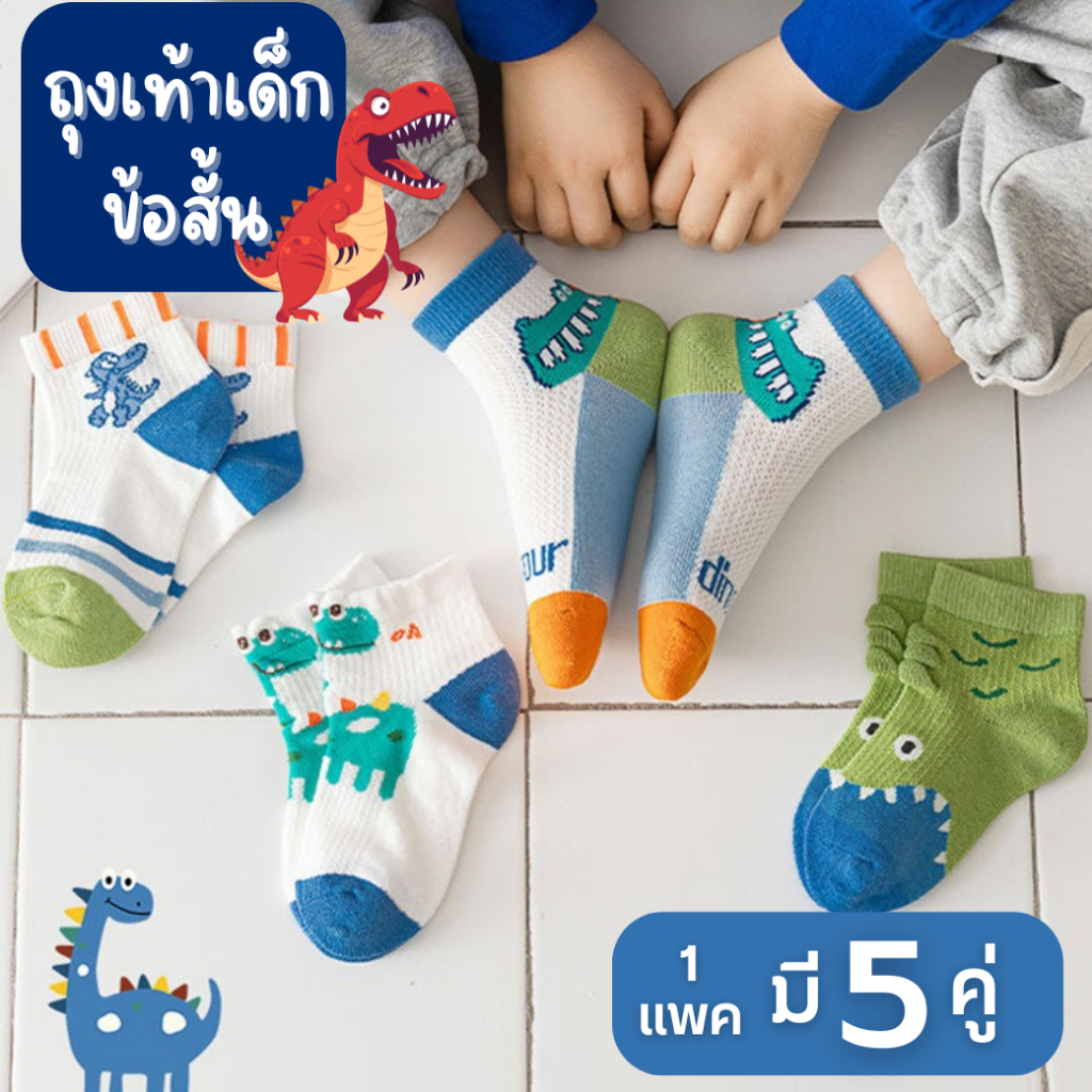 ⭐พร้อมส่ง-ตรงปก⭐ ถุงเท้าเด็กข้อสั้น 1-8 ขวบ งานพรีเมี่ยม 1 ชุดมี 5 คู่ ลายไดโนเสาร์ : Bambilis