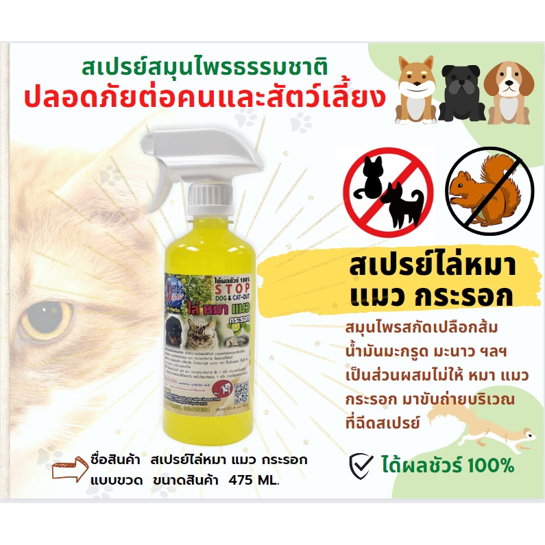 สเปรย์ไล่หมา แมว กระรอก ปริมาณ 475ml. 2000ml. สูตรสมุนไพรไทยออแกนนิค ปลอดภัยต่อคนและสัตว์เลี้ยง