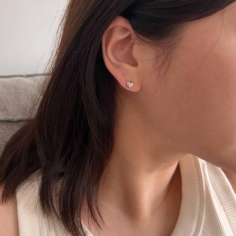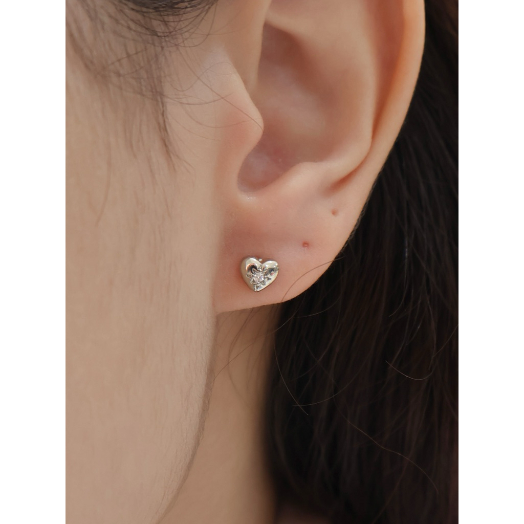 A.piece ต่างหูหัวใจ [silver 925 post] Snow heart stud earrings