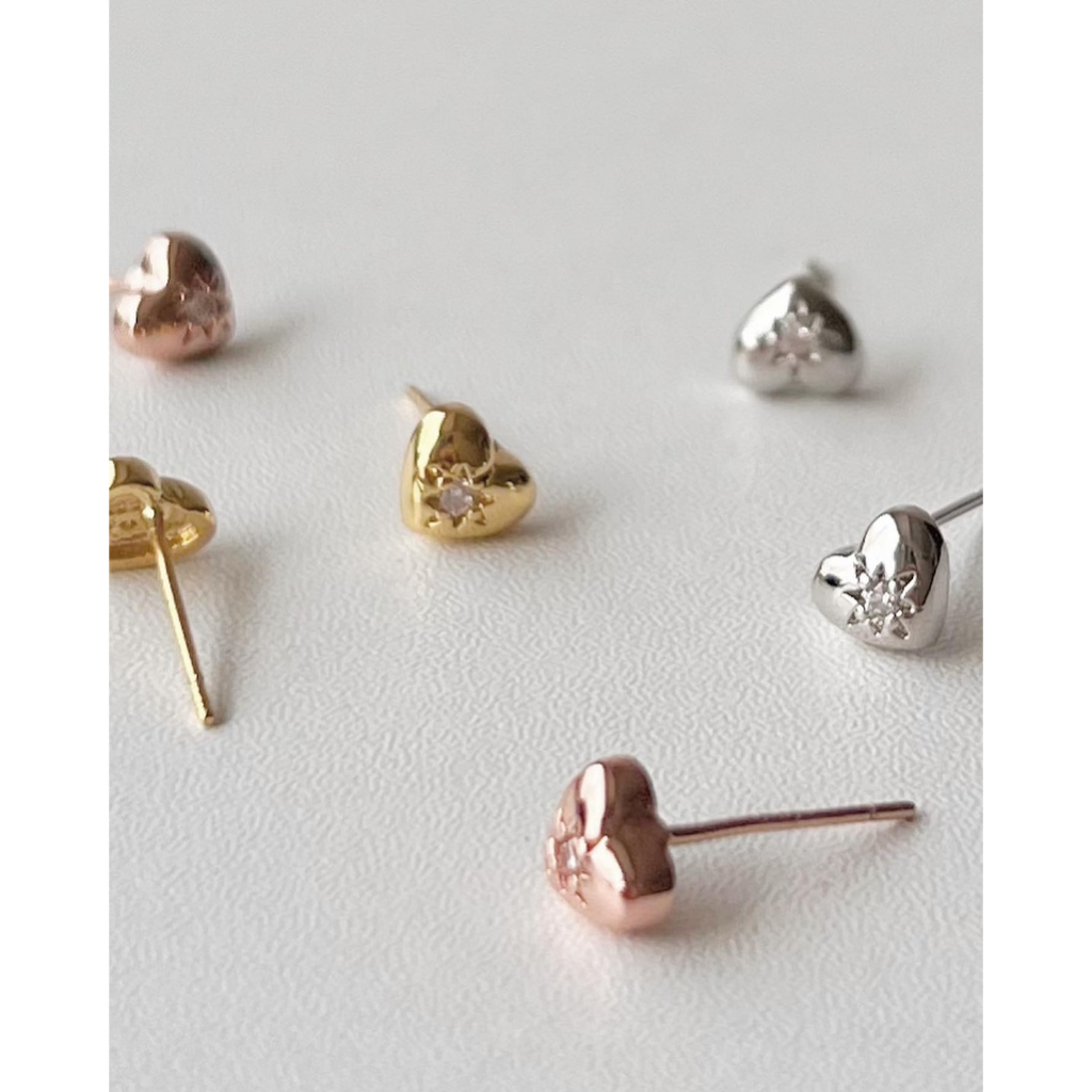 A.piece ต่างหู [Silver 925 pin+Brass] Snow heart stud earrings