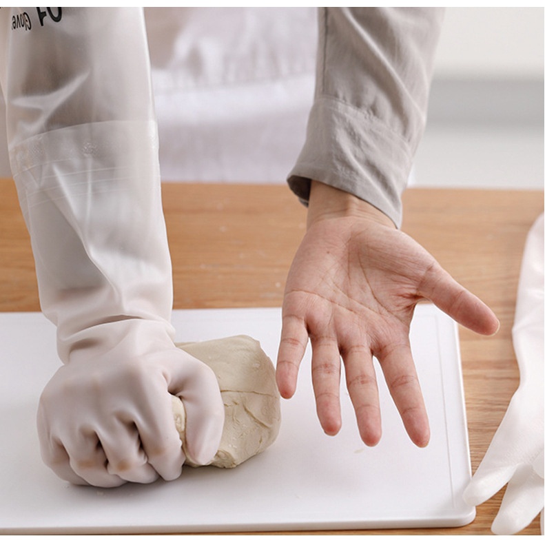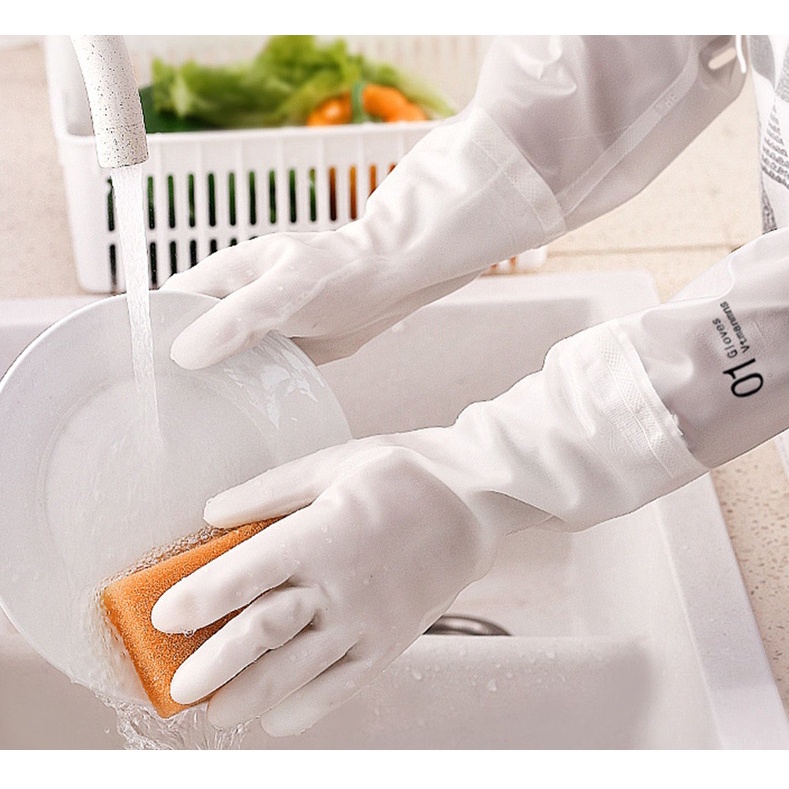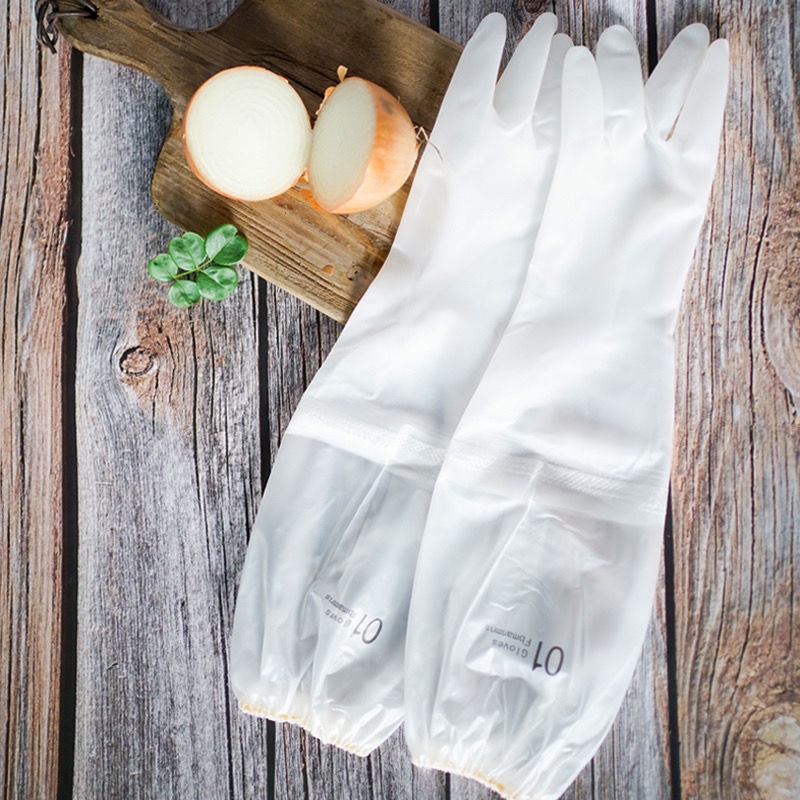 ? ถุงมือยาว ใช้สำหรับทำความสะอาดในครัวเรือน ป้องกันน้ำมันและคราบต่างๆ