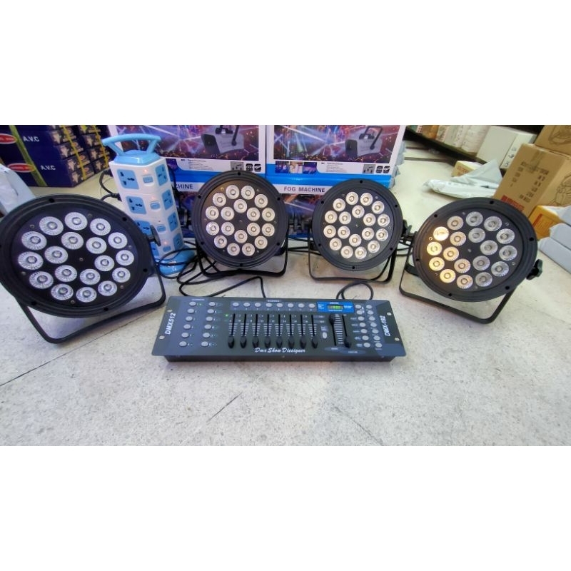 ไฟเวที,ไฟติดตั้งผับ,ชุดไฟเวทีพร้อมบอร์ดคอนโทรลDmx512,par 18led 4in1/RGBW,ไฟพาร์4ตัว+DMX512พร้อมใช้งาน