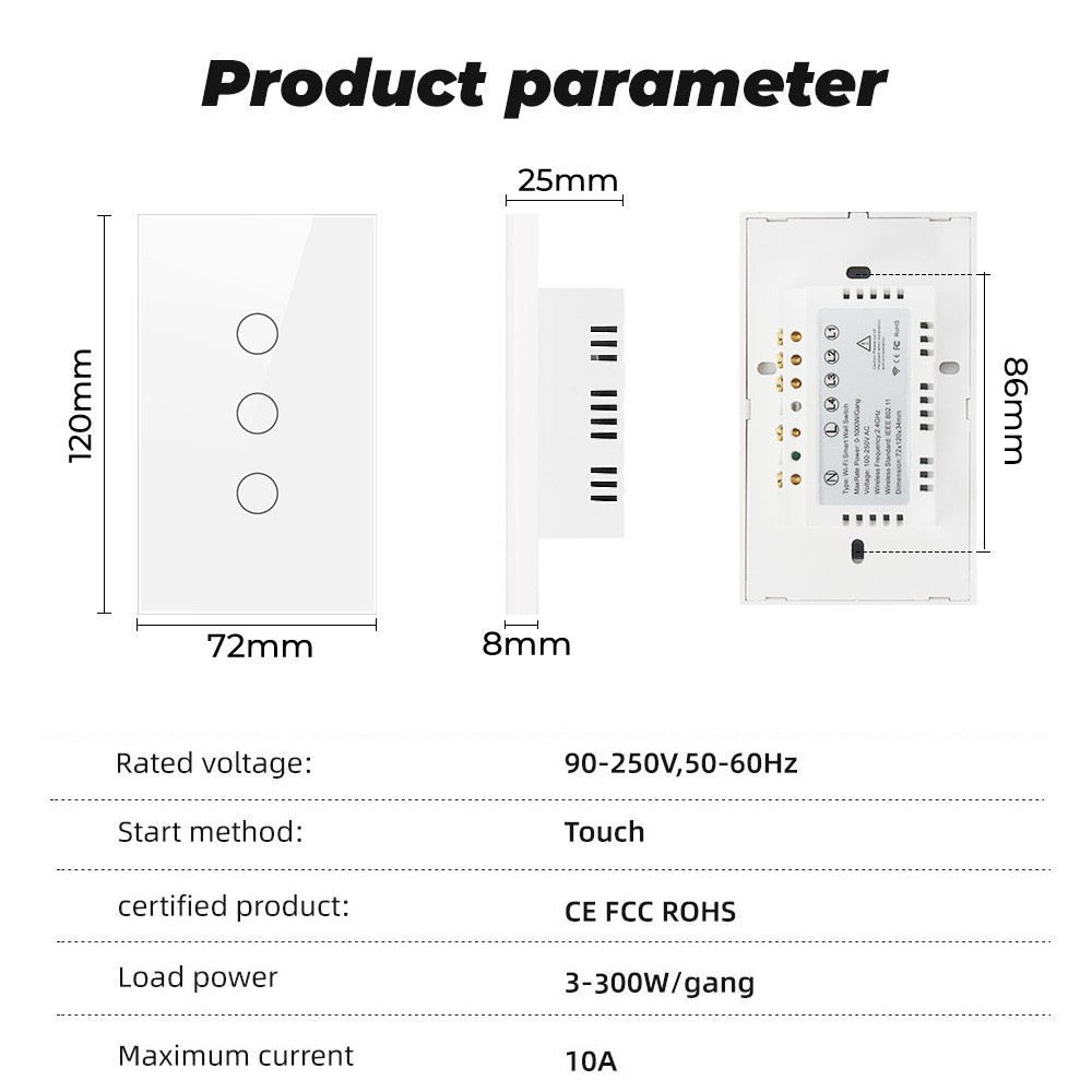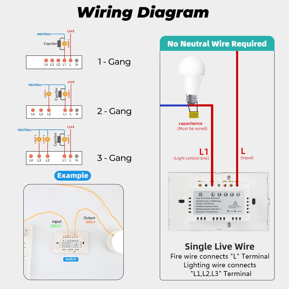 สวิตช์นี้ไม่ต้องใช้สายกลางสามารถใช้งานได้โดยตรงหลังจากการติดตั้ง