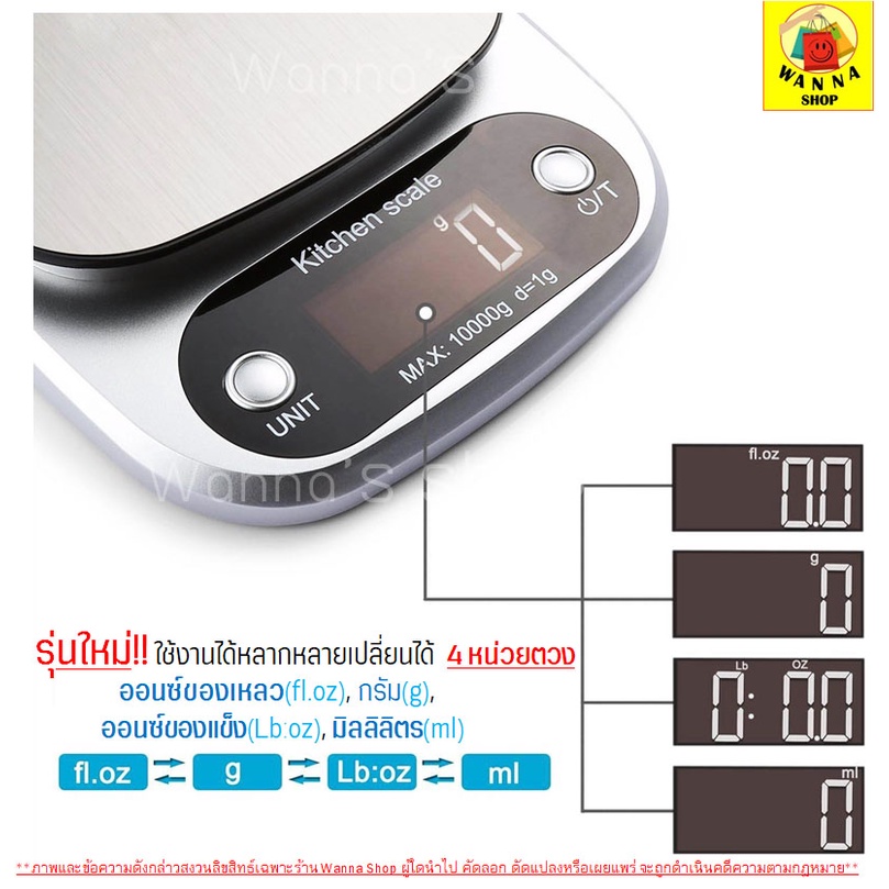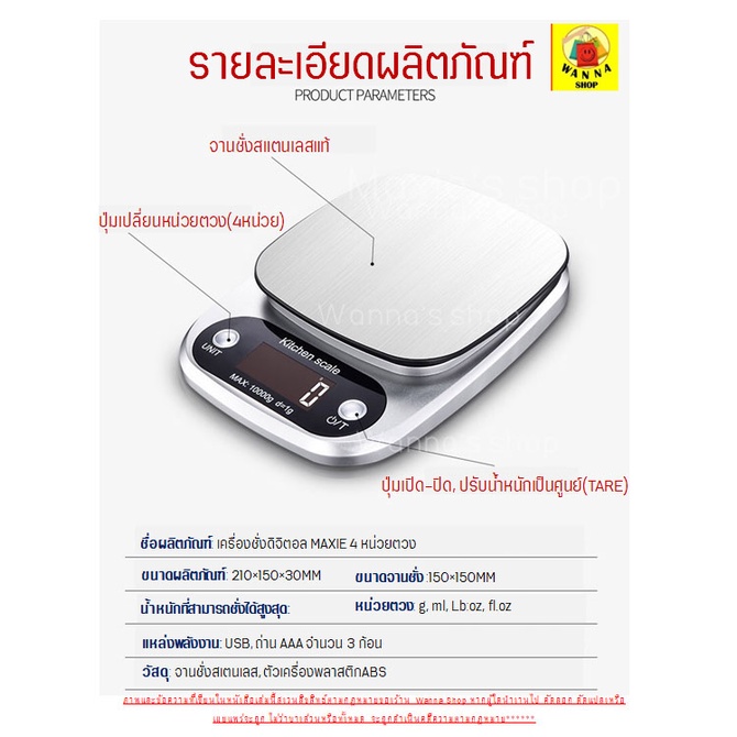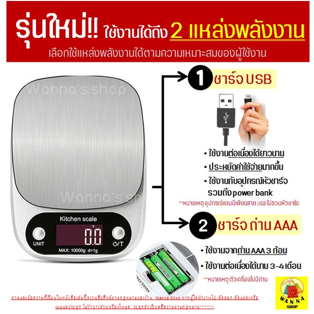 ?ส่งฟรี? เครื่องชั่งดิจิตอล WANNA แสตนเลสแท้ รุ่นUSB/ใช้ถ่าน(ใช้ได้2แหล่งพลังงาน)ใหม่10กิโล/4หน่วยตวง ตาชั่งดิจิตอล