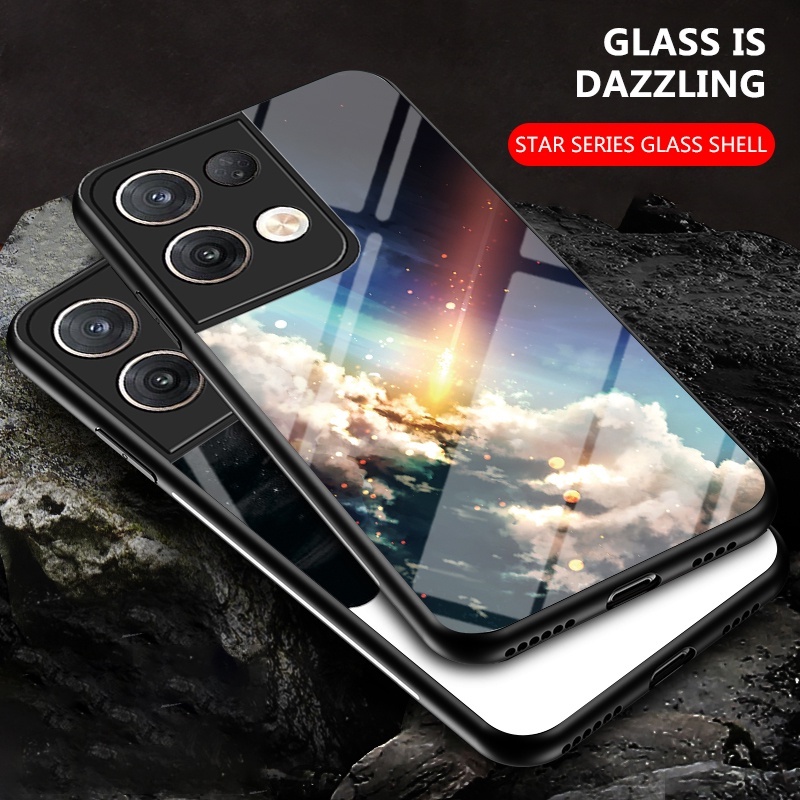 เคสโทรศัพท์มือถือกระจกนิรภัย แบบแข็ง ขอบนิ่ม กันกระแทก ลายดาว สําหรับ Oppo Reno 8 Pro 8Z 5G 8Pro Reno8 Reno8Pro