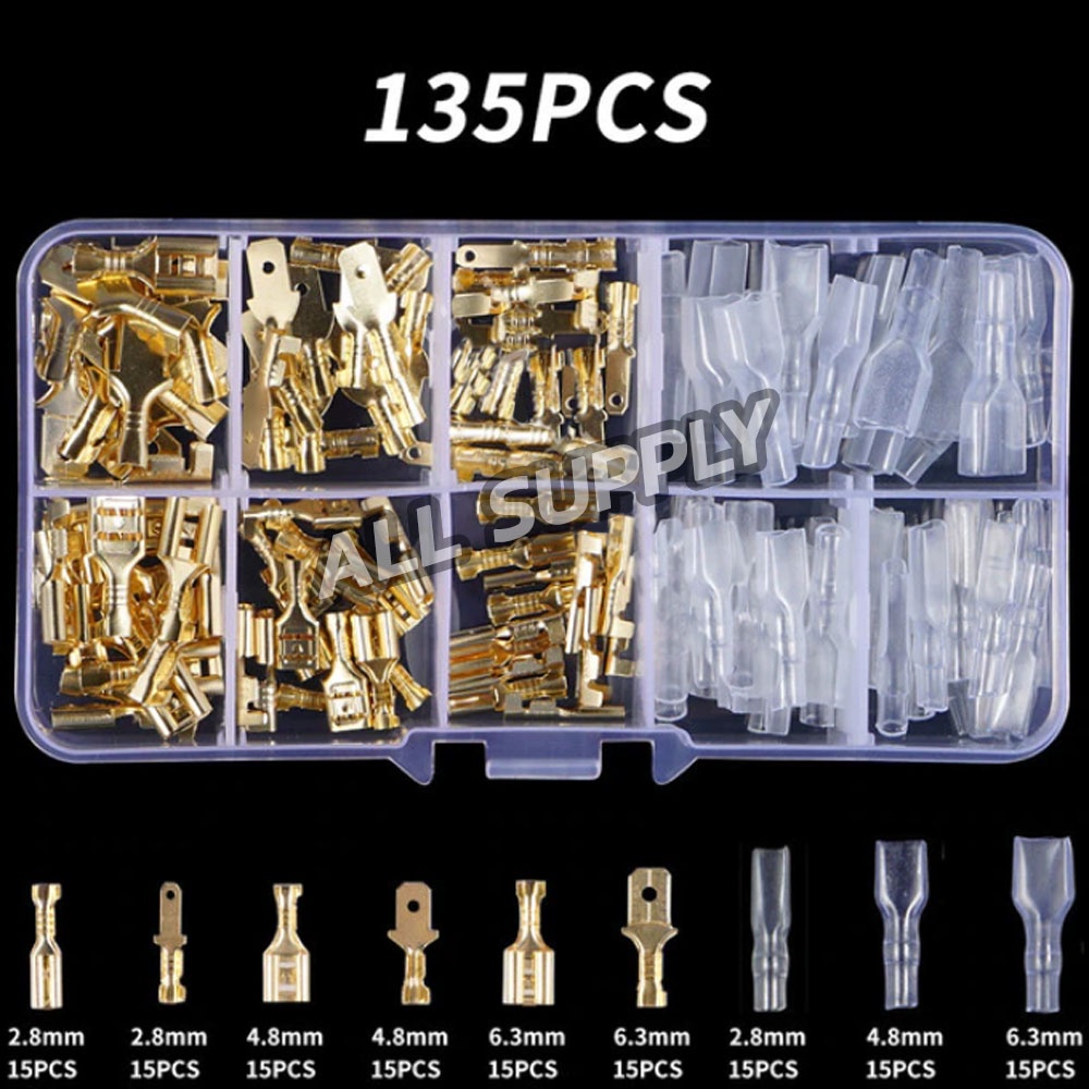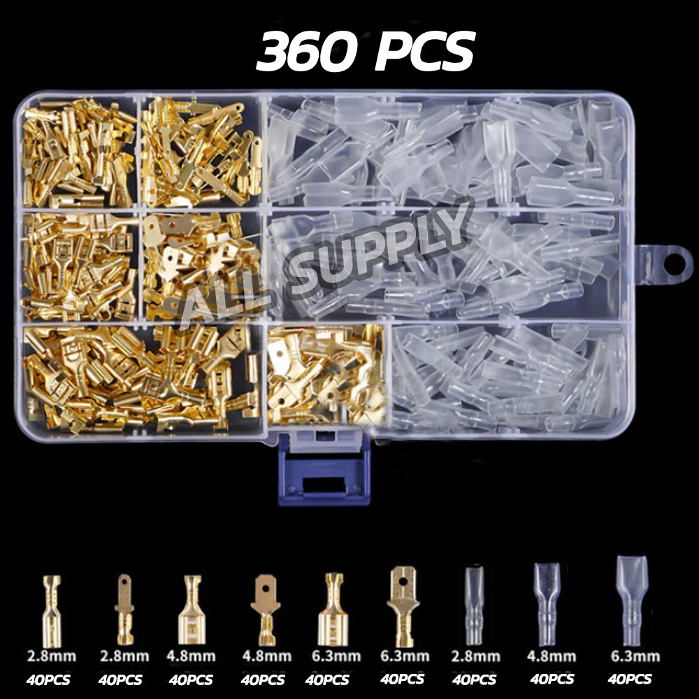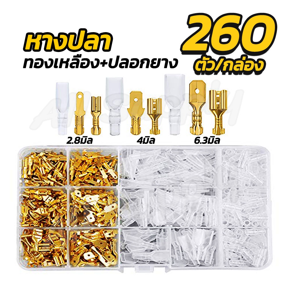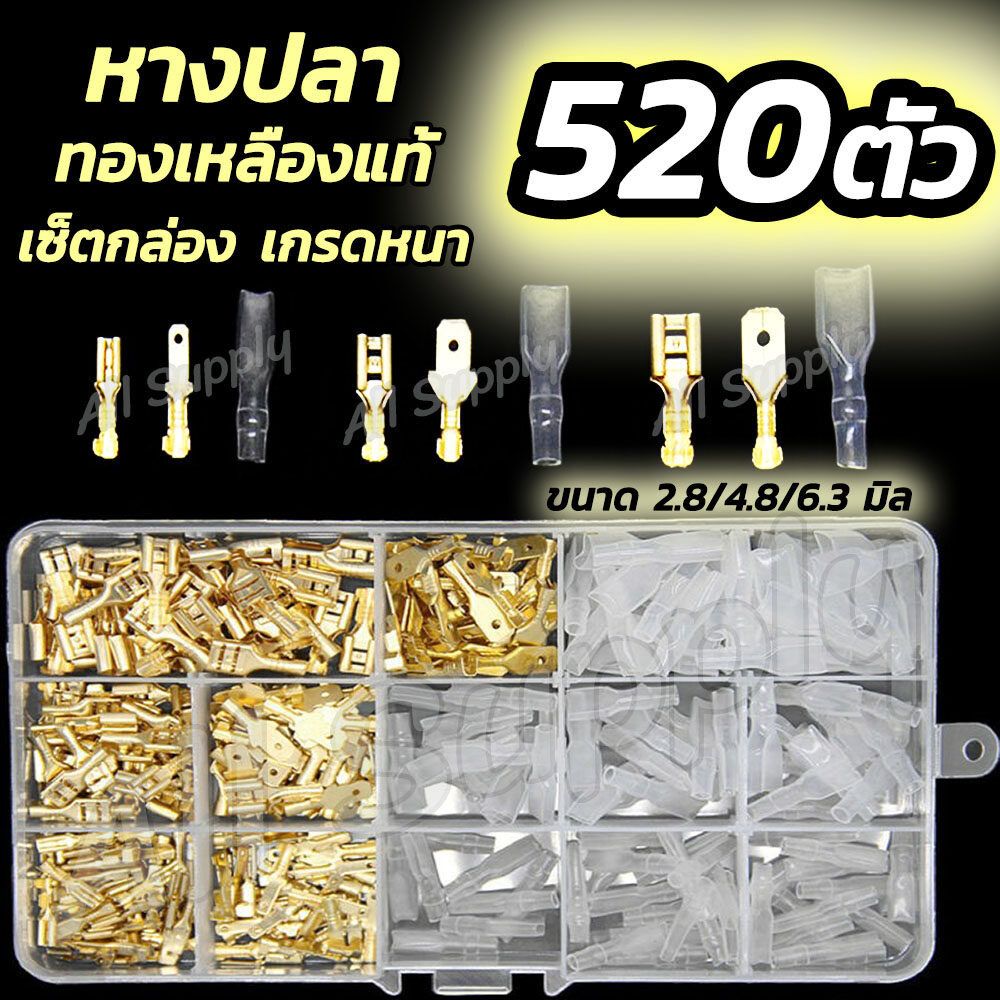 หางปลาทองเหลือง 1,051ชิ้น,520ชิ้น,360ชิ้น,260ชิ้น,135ชิ้น กล่อง แบนเมีย + แบนผู้ + ปลอกยาง แบน(กลาง+จิ๋ว ขนาด6.3+4.8+2.8มิล) รุ่นหนา ไม่รวมค่าขนส่ง อย่างดี เกรดเอ ต่อสายไฟ
