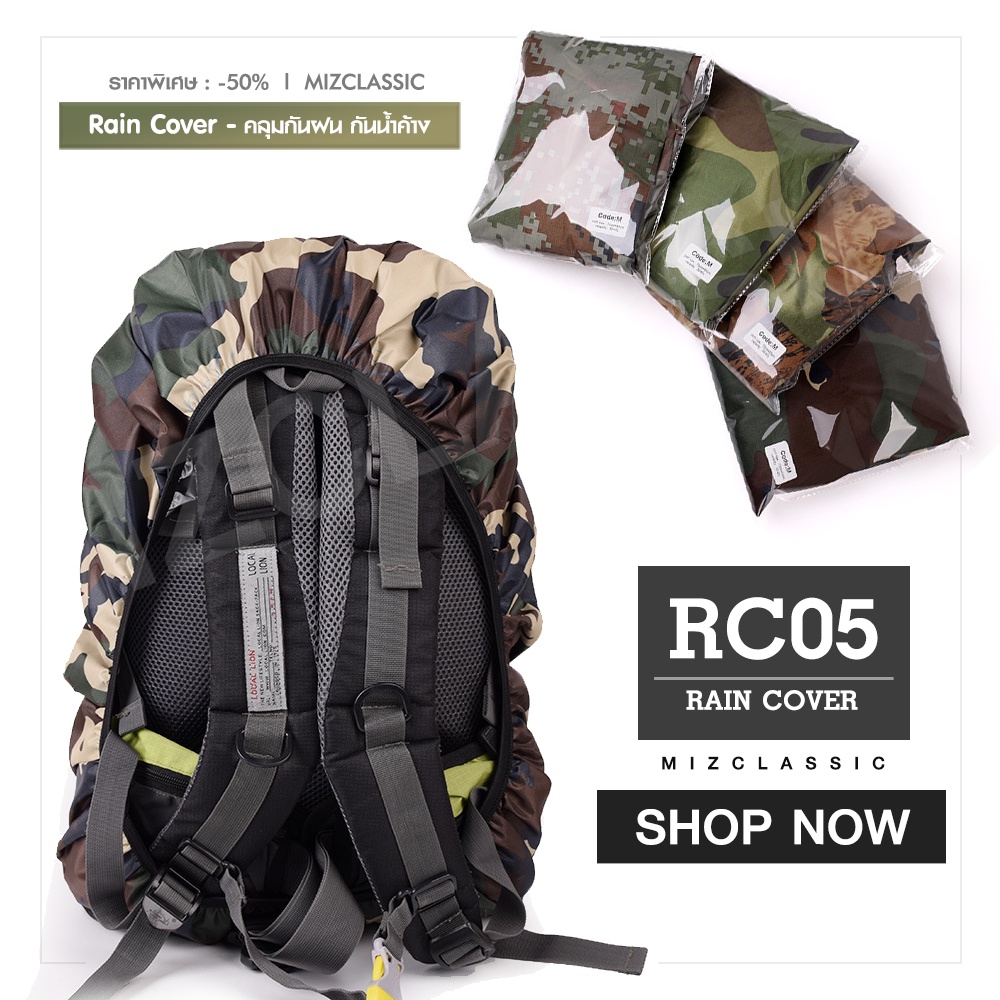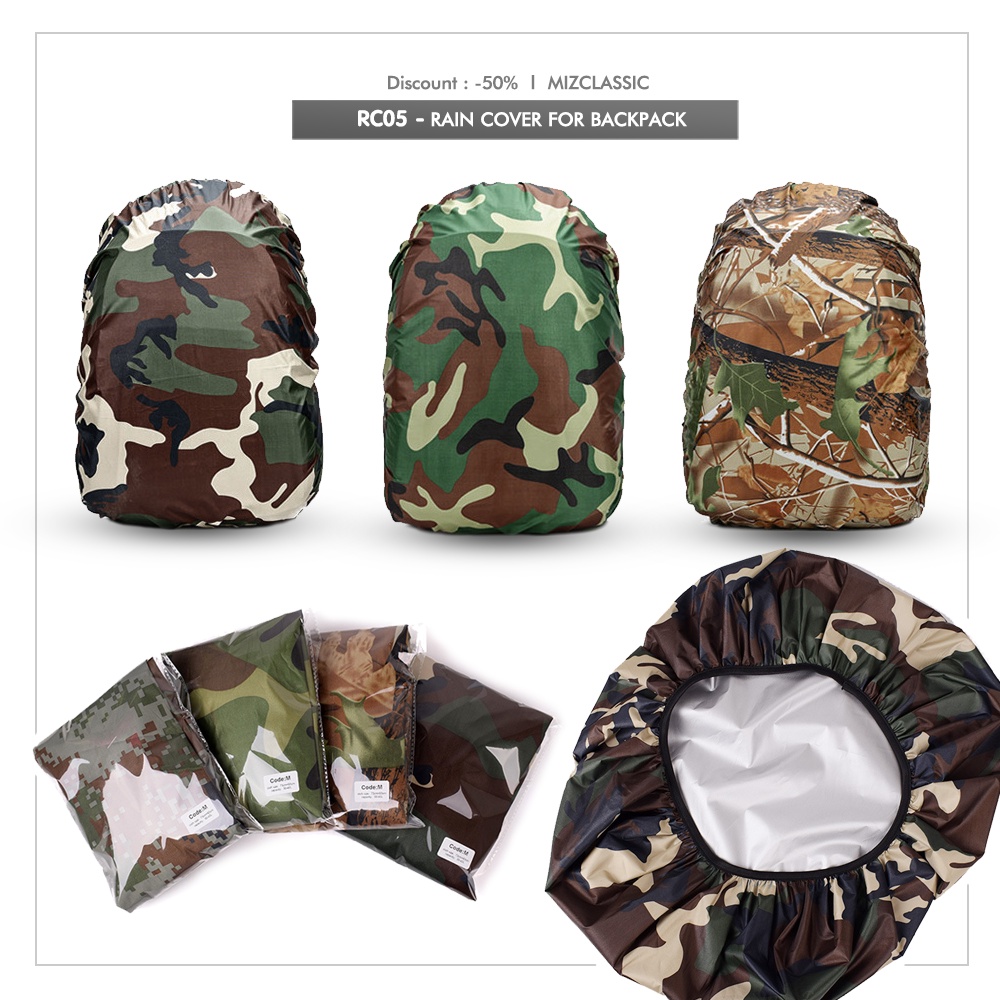 RC05 คลุมกันฝนลายพราง raincover ครอบกระเป๋า ผ้าคลุมกระเป๋าเดินทาง กันน้ำค้าง กันเปียก คลุมกันฝนลายทหาร สำหรับกระเป๋าเป้