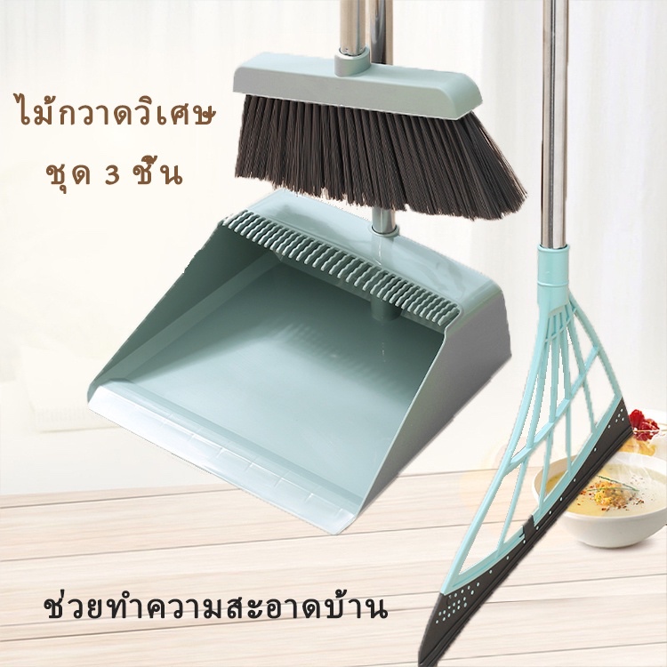 ชุดไม้กวาด มีแปรงในตัว พร้อมที่โกย พลาสติกหนาอย่างดี แข็งแรงราคาถูก ใช้งานดี ชุดไม้กวาดพร้อมโกยผง-110