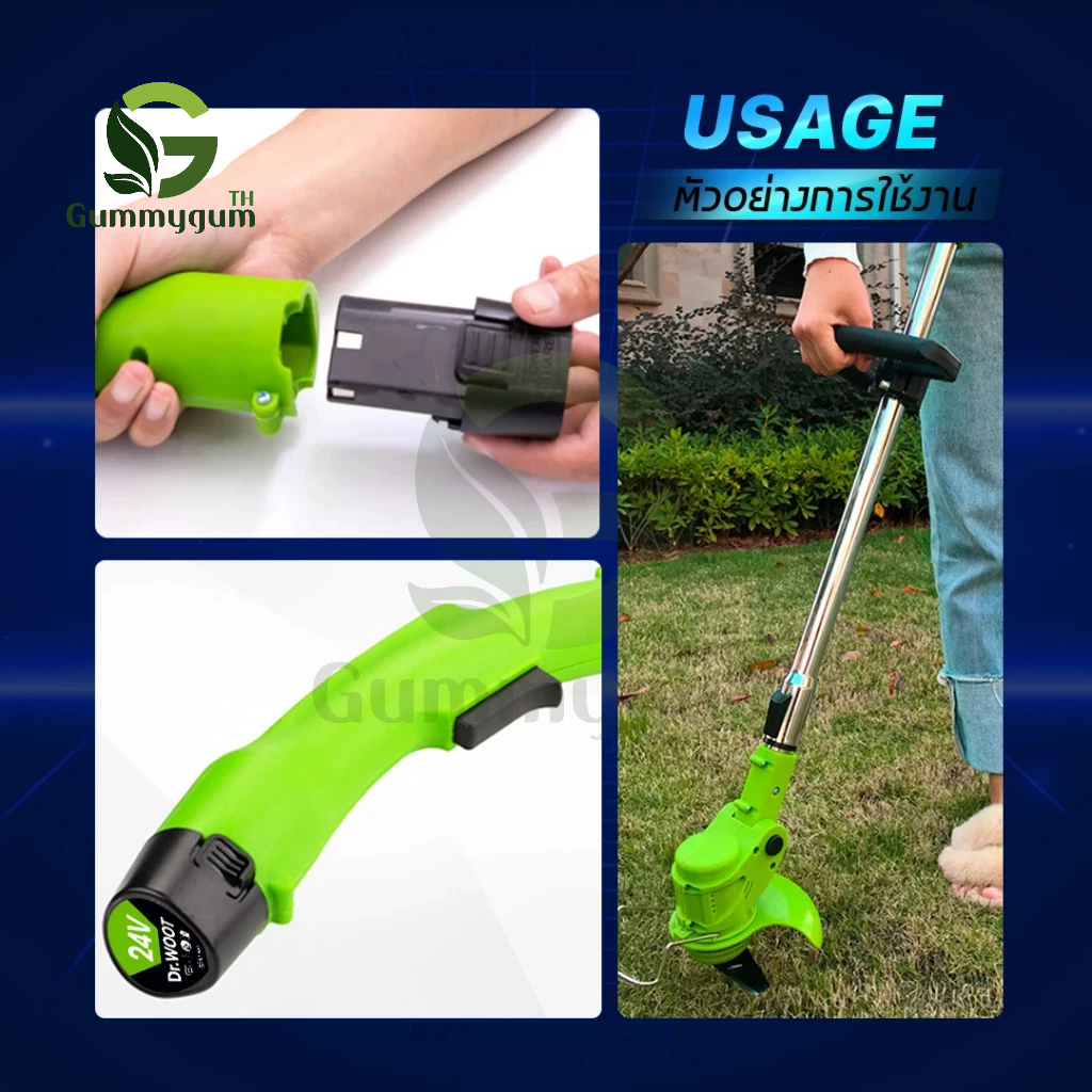 ใช้งานได้กับเครื่องตัดหญ้าไร้สายรุ่นเเบตสี่เหลี่ยม