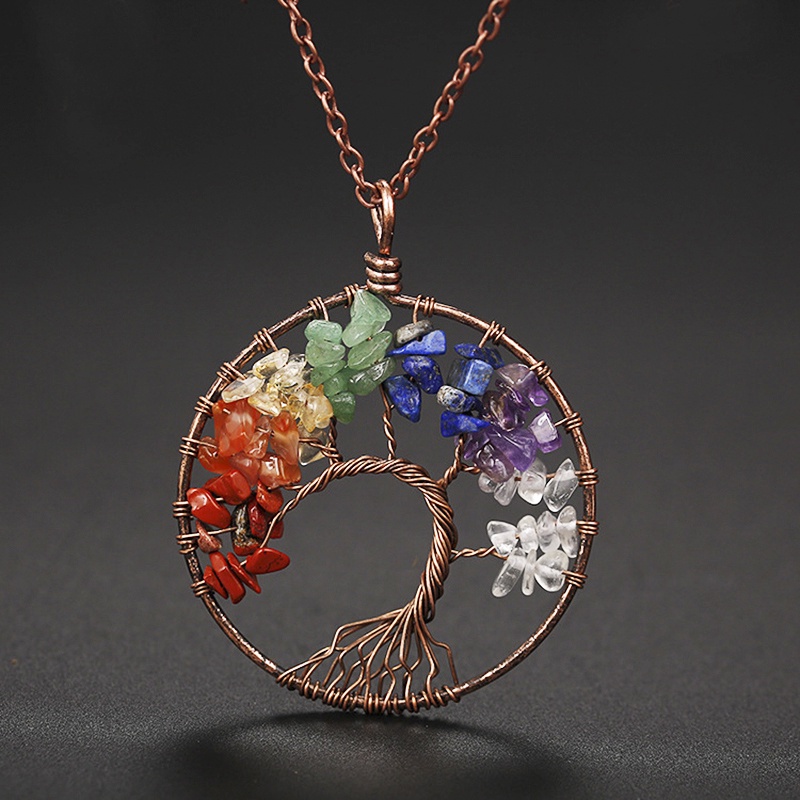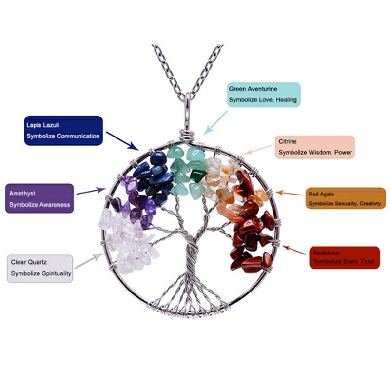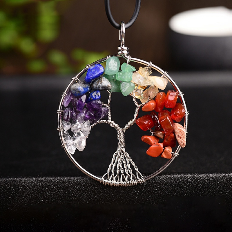 เครื่องประดับ สร้อยคอ จี้หินคริสตัลธรรมชาติ เจ็ดจักระนําโชค