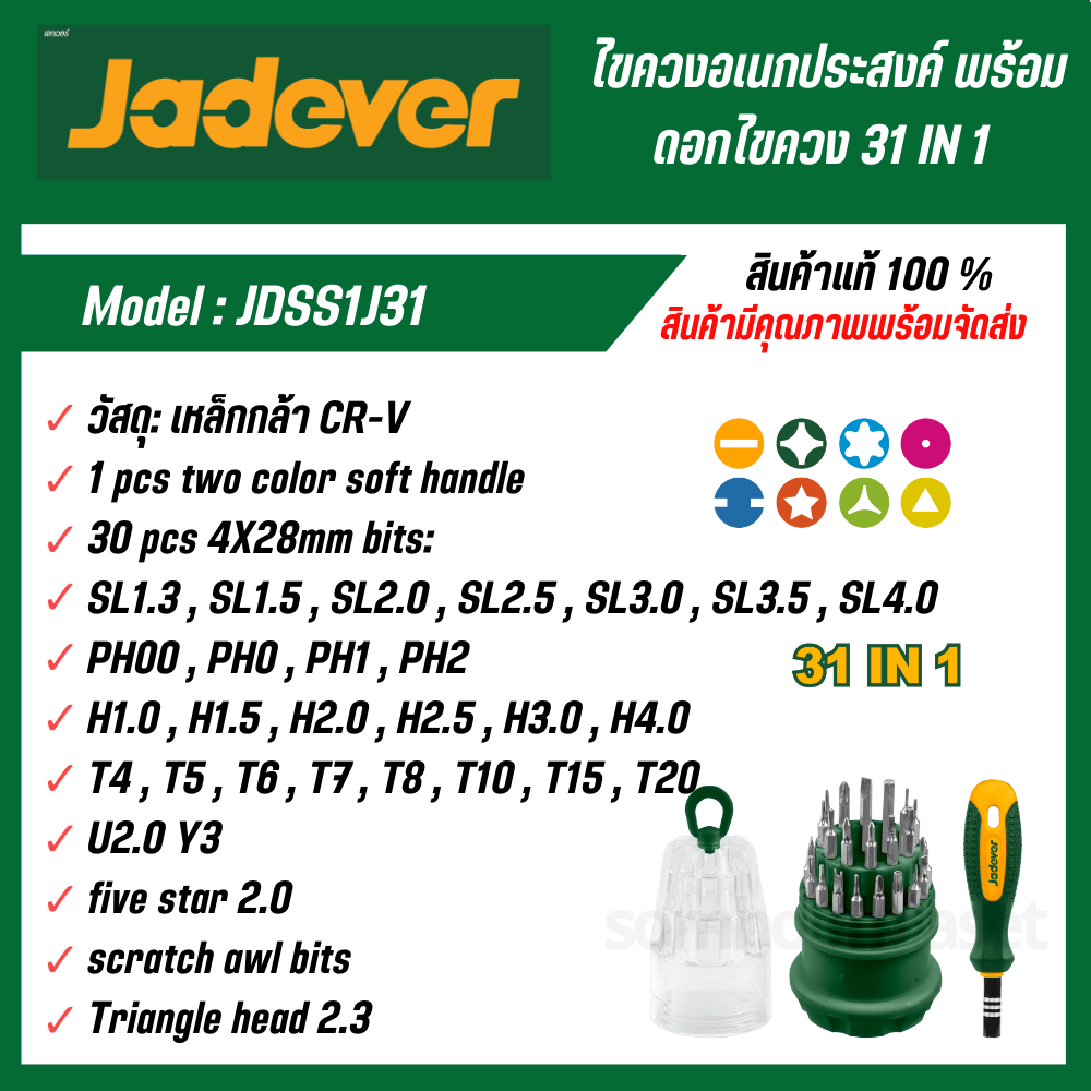 JADEVER ไขควงอเนกประสงค์ พร้อมดอกไขควง 31 IN 1 รุ่น JDSS1J31 ไขควง ไขควงเปลี่ยนหัว ( 31 in 1 Screwdriver Set )