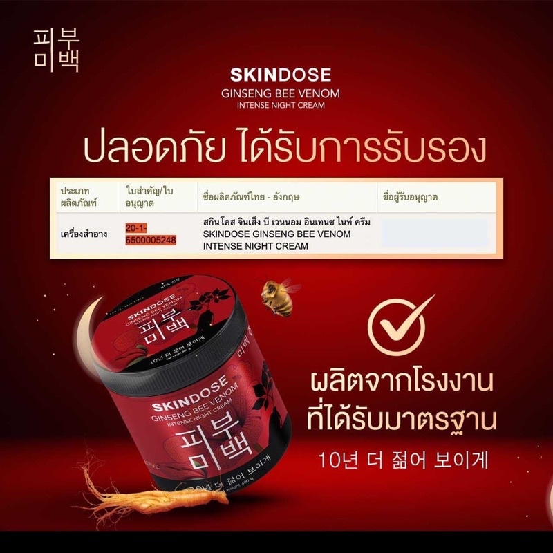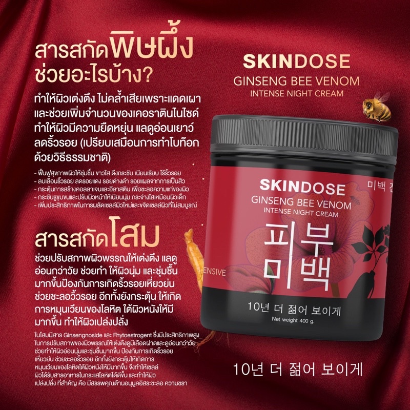 โสมพิษผึ้ง ครีมโสมพิษผึ้งจักรพรรดิ skin dose ช่วยปรับ ผิวขาวใส ออร่า 400g.