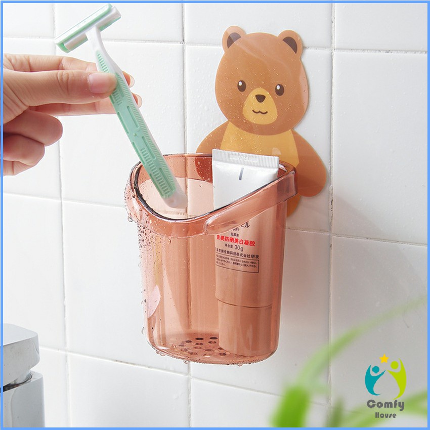 Comfy ที่ใส่แปรงสีฟันติดผนังลายการ์ตูน แก้วใส่แปรงสีฟัน สติ๊กเกอร์หมีน้อยน่ารัก Toothbrush rack