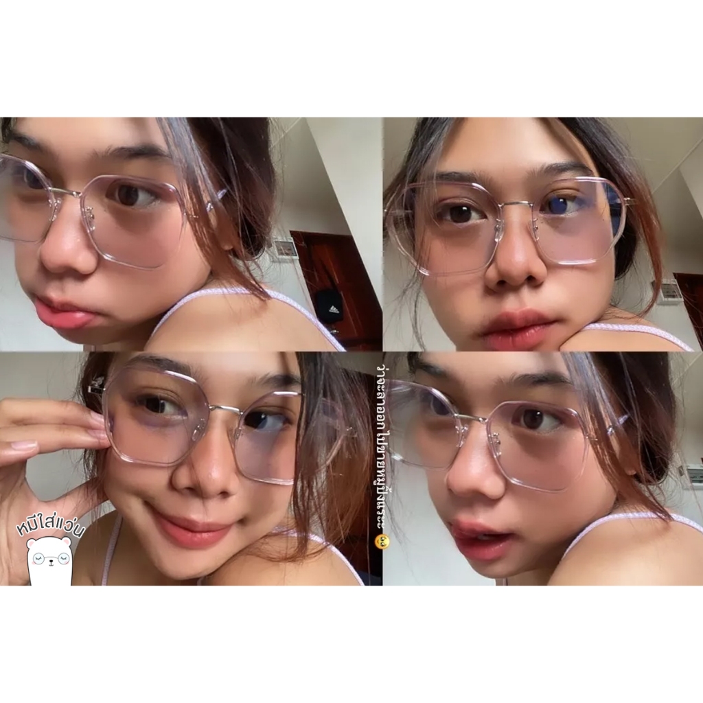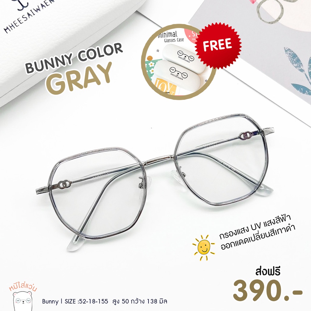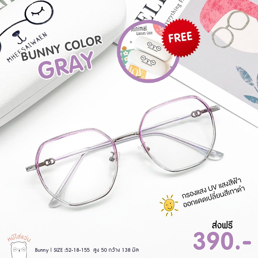 แว่นกรองแสง blueblock บลูบล็อคออโต้ แว่นตากรองแสงคอม ออกแดดเปลี่ยนสีดำ กรอบ bunny ม่วง หมีใส่แว่น