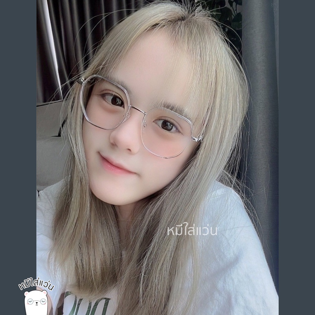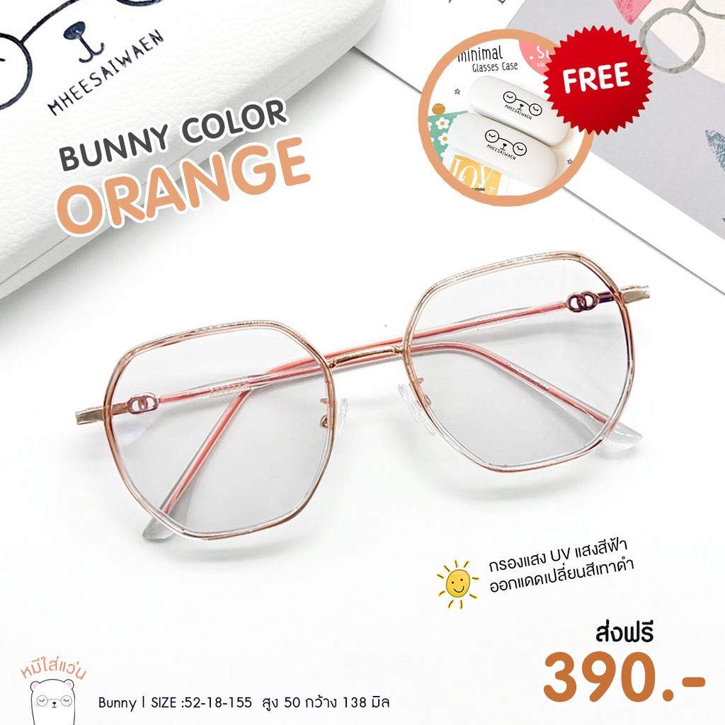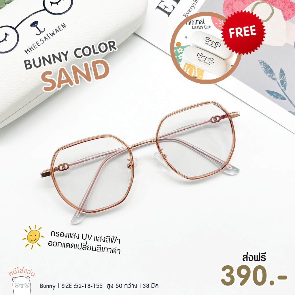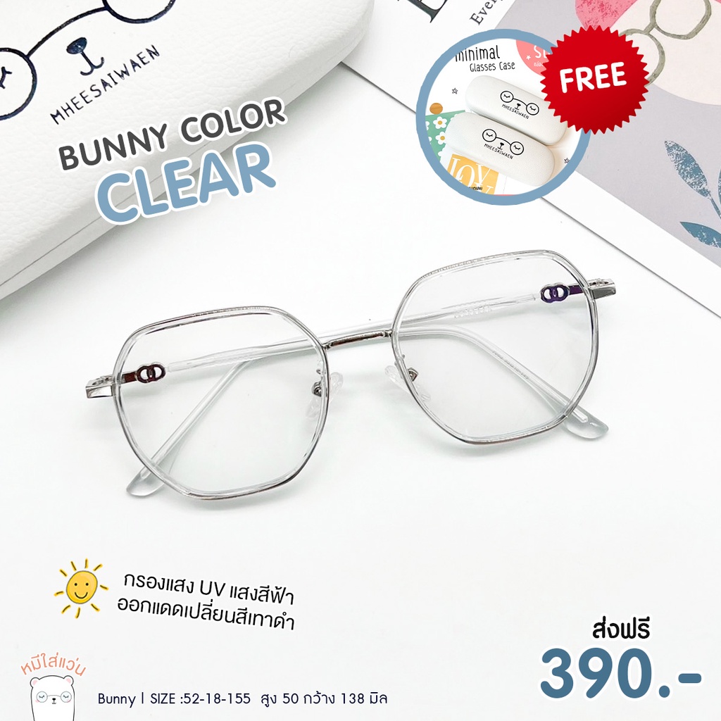 แว่นกรองแสง blueblock บลูบล็อคออโต้ แว่นตากรองแสงคอม ออกแดดเปลี่ยนสีดำ กรอบ bunny ม่วง หมีใส่แว่น